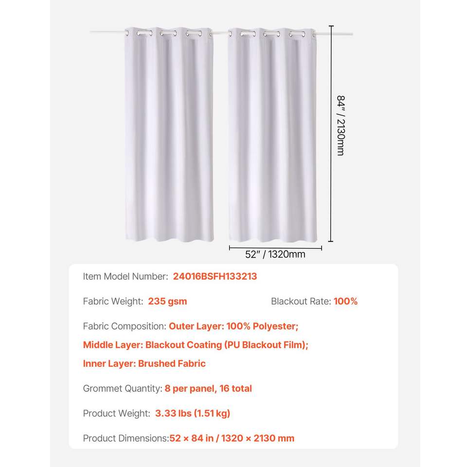 Tende Oscuranti Lunghe 84 Pollici, Set di 2 Pannelli Larghi 52 Pollici Ciascuno, 100% Oscuranti, Isolanti Termici, a 3 Strati