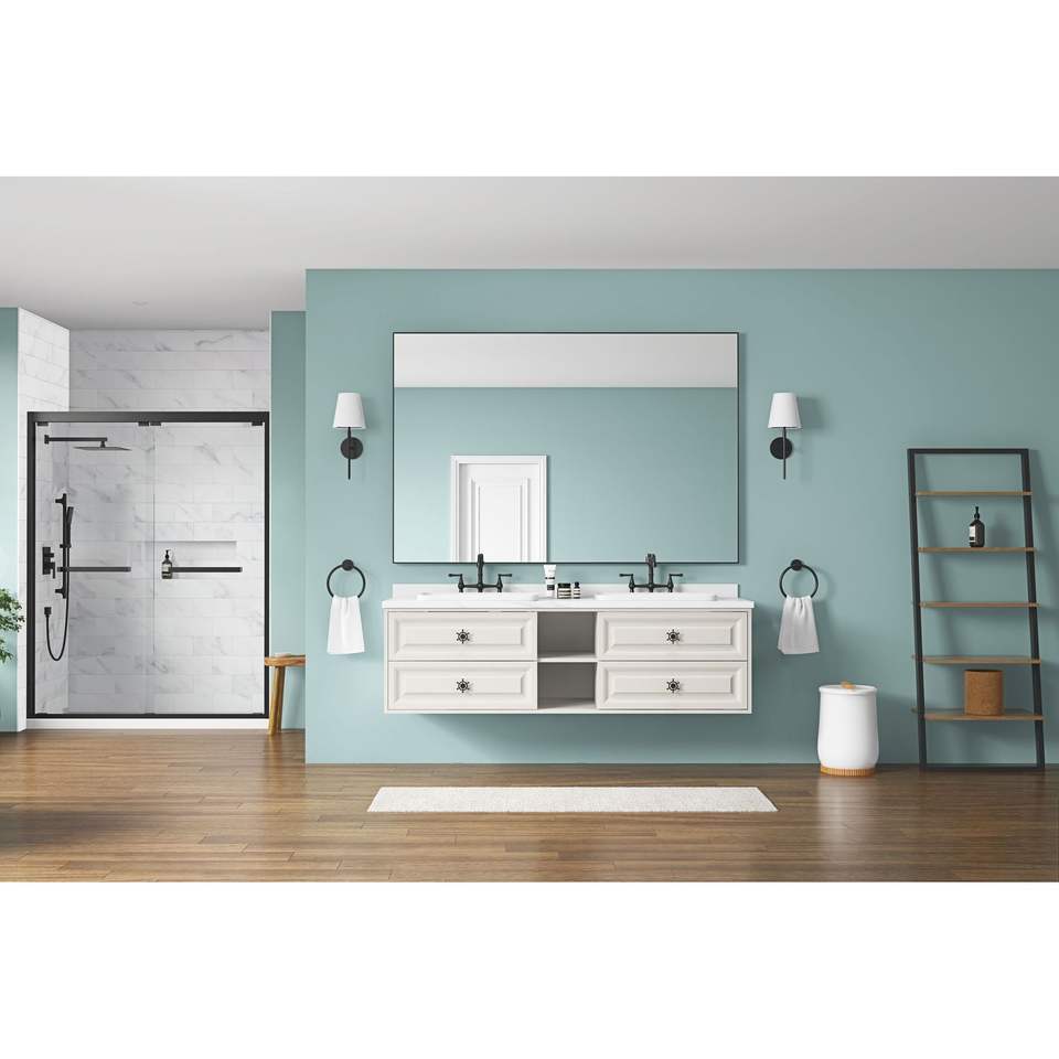 84 "W X 48" H Extra Large cornice rettangolare nera montaggio a parete bagno specchio da parete HD specchio da parete per palestra Studio di danza