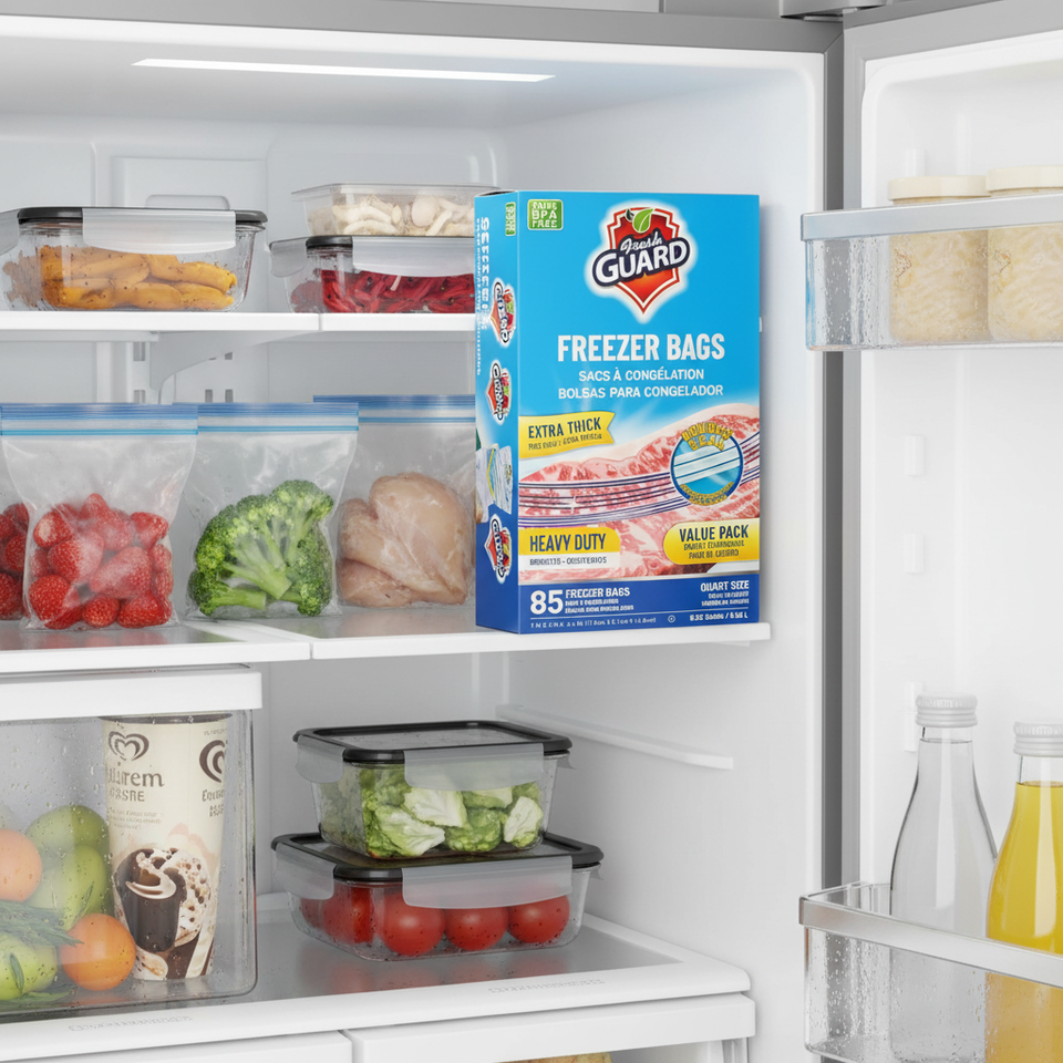 Sacchetti per Congelatore e Frigorifero Resistenti da 85 Pezzi, Formato Quarto, con Linguette Richiudibili Facili da Aprire