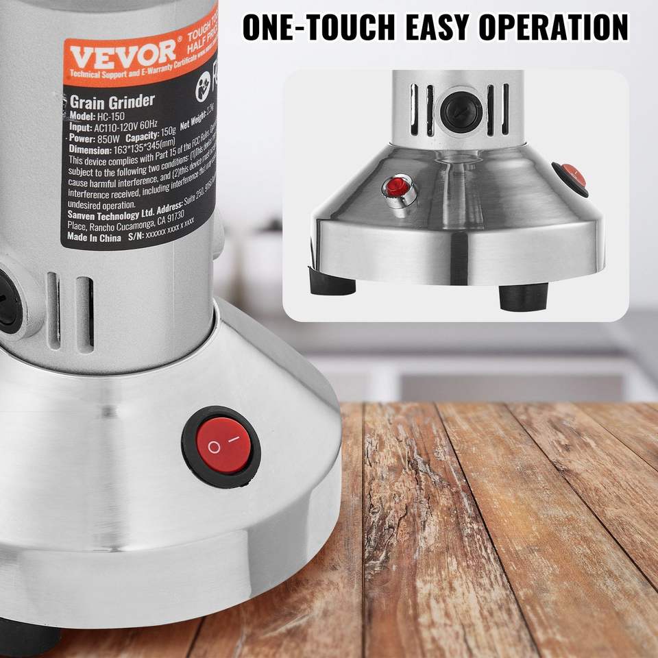 850W Commercial Stainless Steel Electric Grain Mill Grinder 150g High Speed Spice Pulverizer Powder Machine Dry Grains Spices
