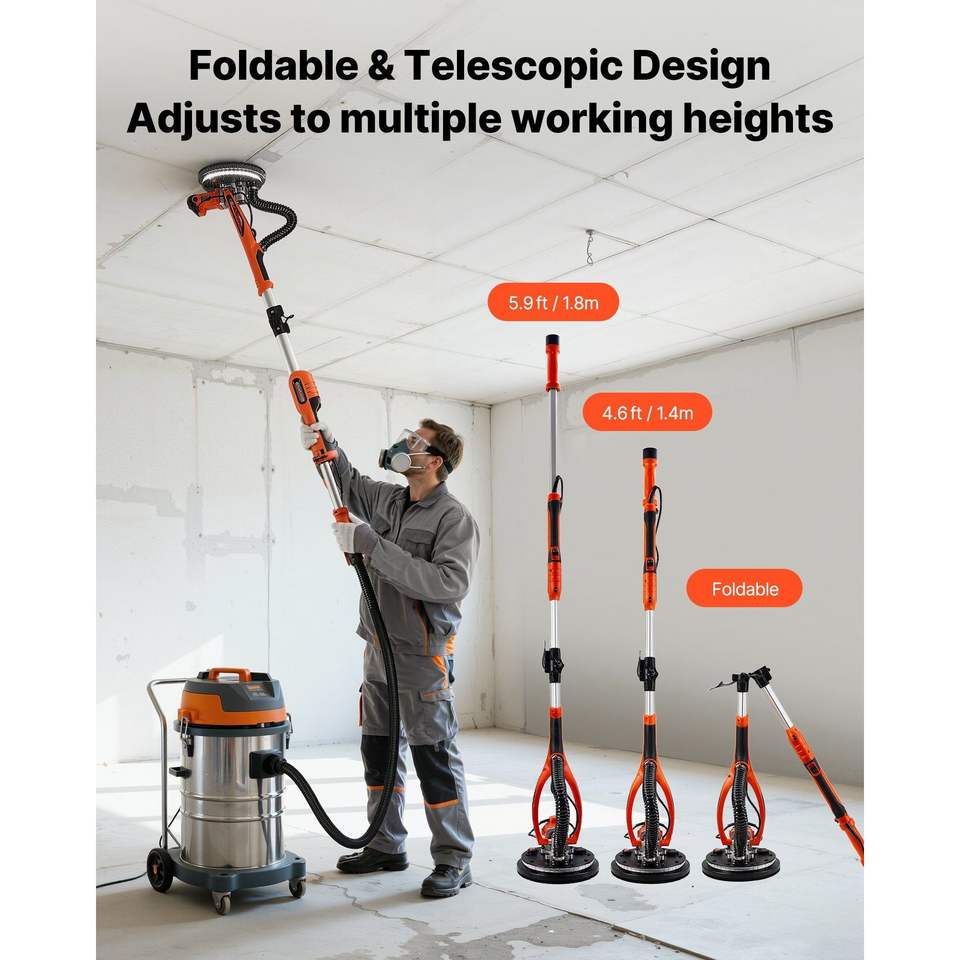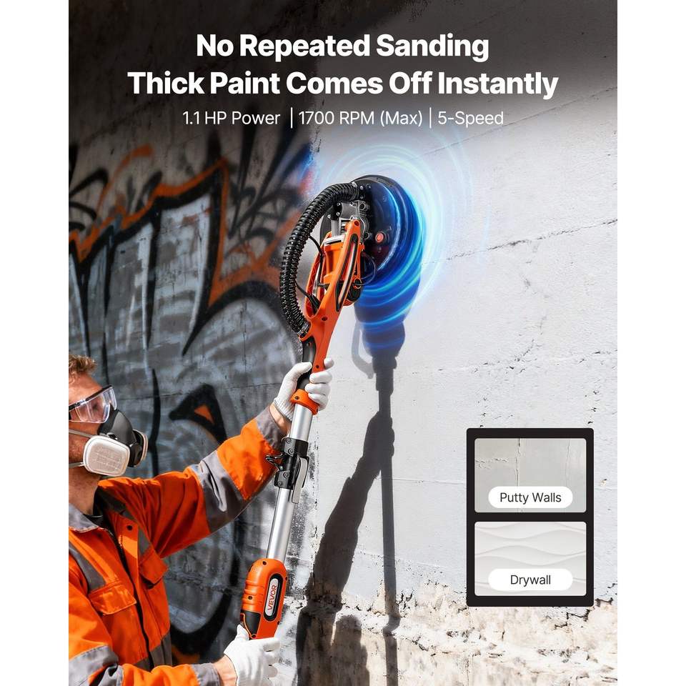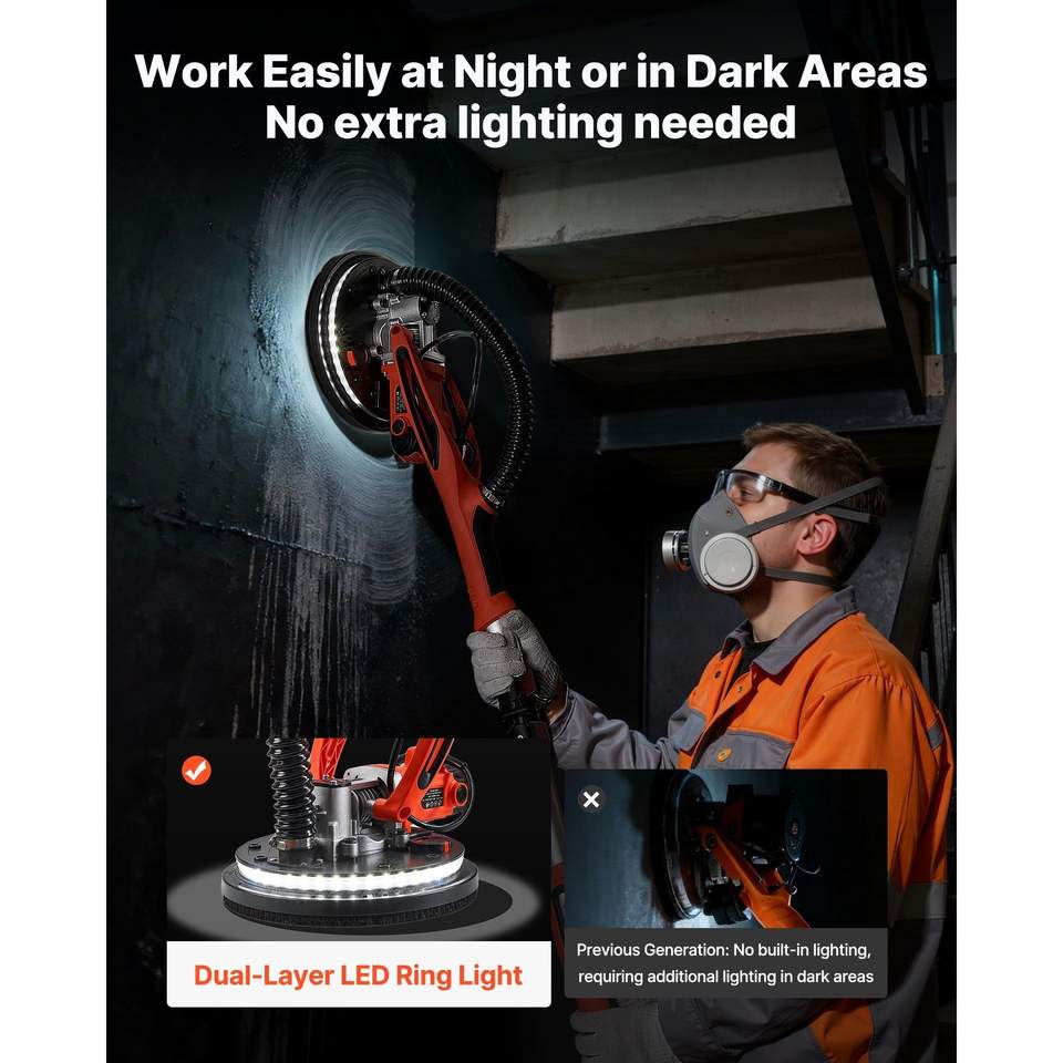 Levigatrice Elettrica a Doppia Testa da 850W con LED, 5 Velocità Variabili 800-1700 RPM, Strumento per la Rimozione di Controsoffitti in Cartongesso, Levigatrice per Pavimenti