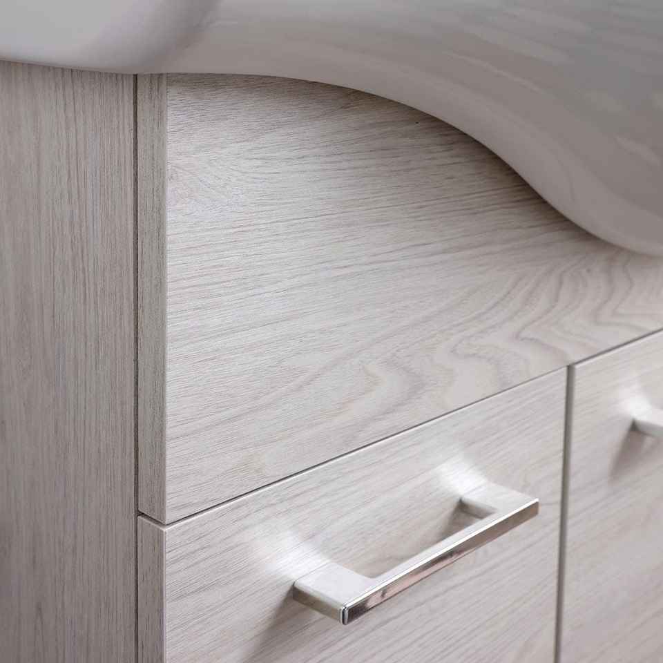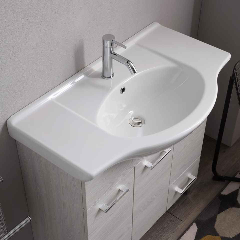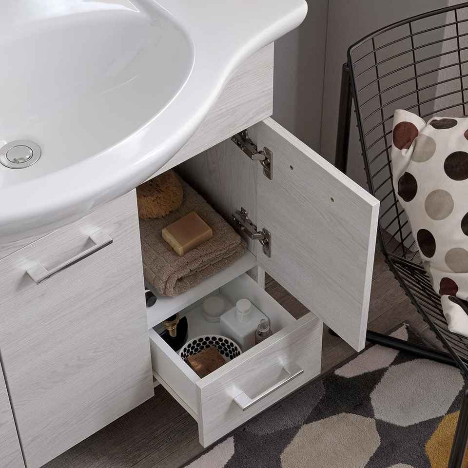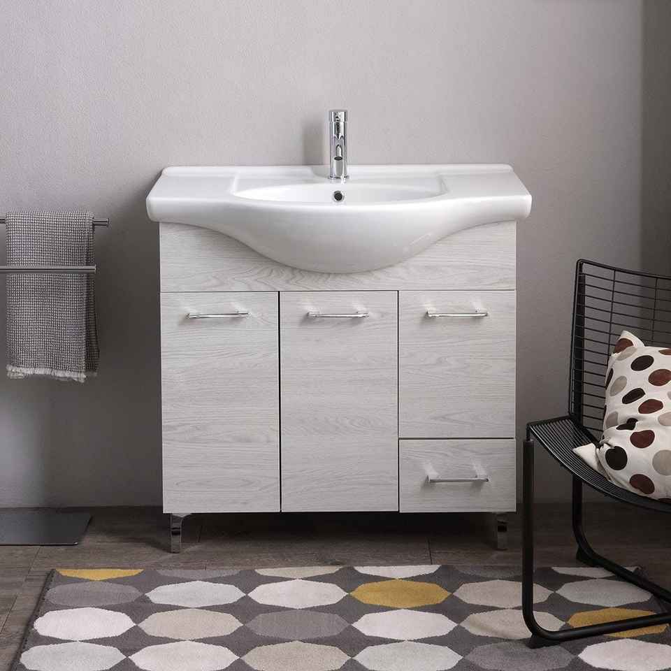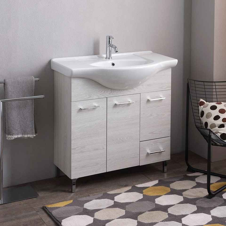 Mobile Bagno Moderno da Terra in Rovere Bianco 85cm con 3 Ante 1 Cassetto Facile da Pulire Lavabo Ravenna