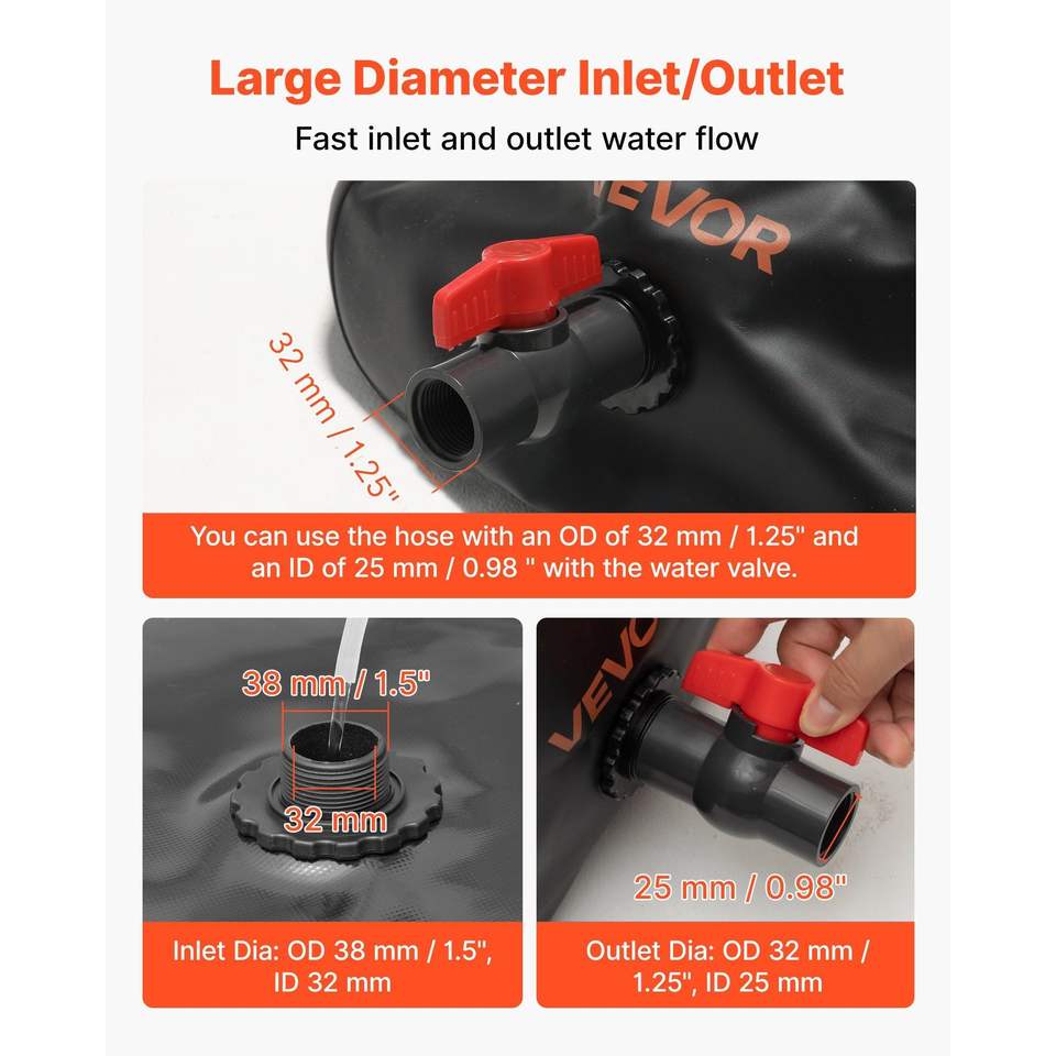 87 Gallon (330L) Large Capacity Hydration Bladder 1000D PVC Water Storage Container Tank Collapsible Portable Soft Bag for
