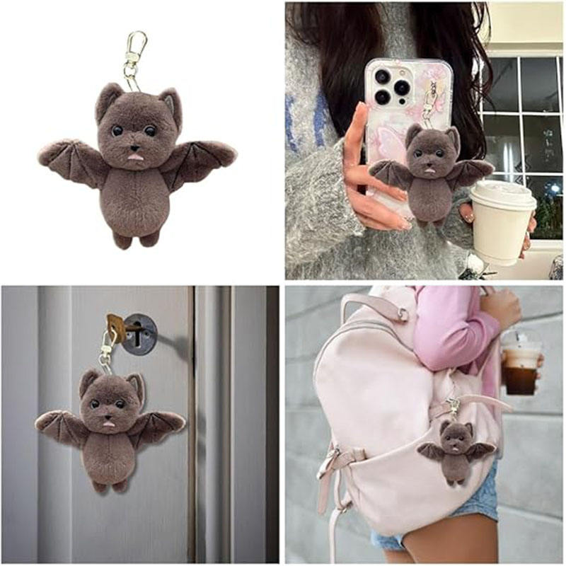 8742 Adorabile Portachiavi Peluche a Forma di Pipistrello, Morbido Ciondolo per Borsa, Ornamento Cartoon per Zaino, Regalo di Halloween per Ragazze