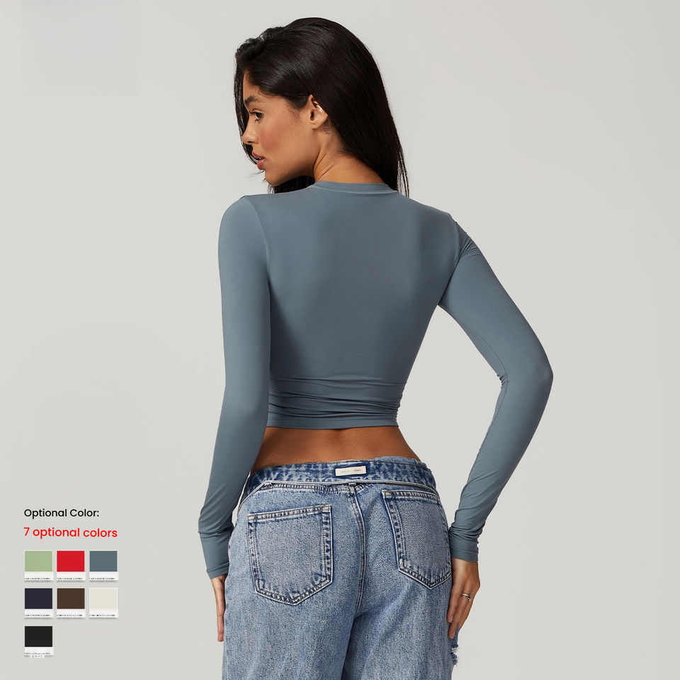 8743 che esegue il Logo personalizzato Training Mujer De Moda nuove magliette Yoga abbigliamento sportivo semplici magliette da allenamento a maniche lunghe