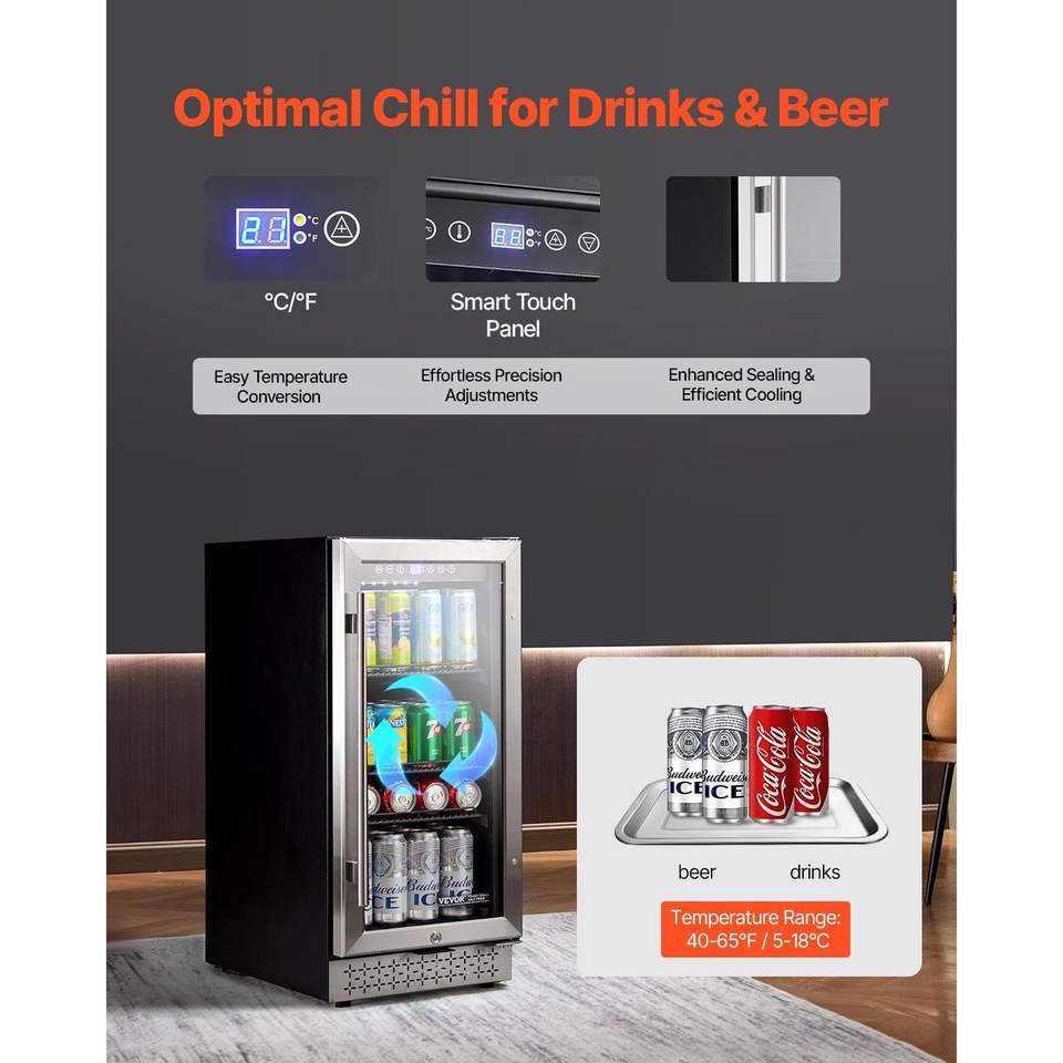 88 Can Mini Fridge with Digital Temperature Control & Adjustable Shelves Beverage Cooler with Glass Door