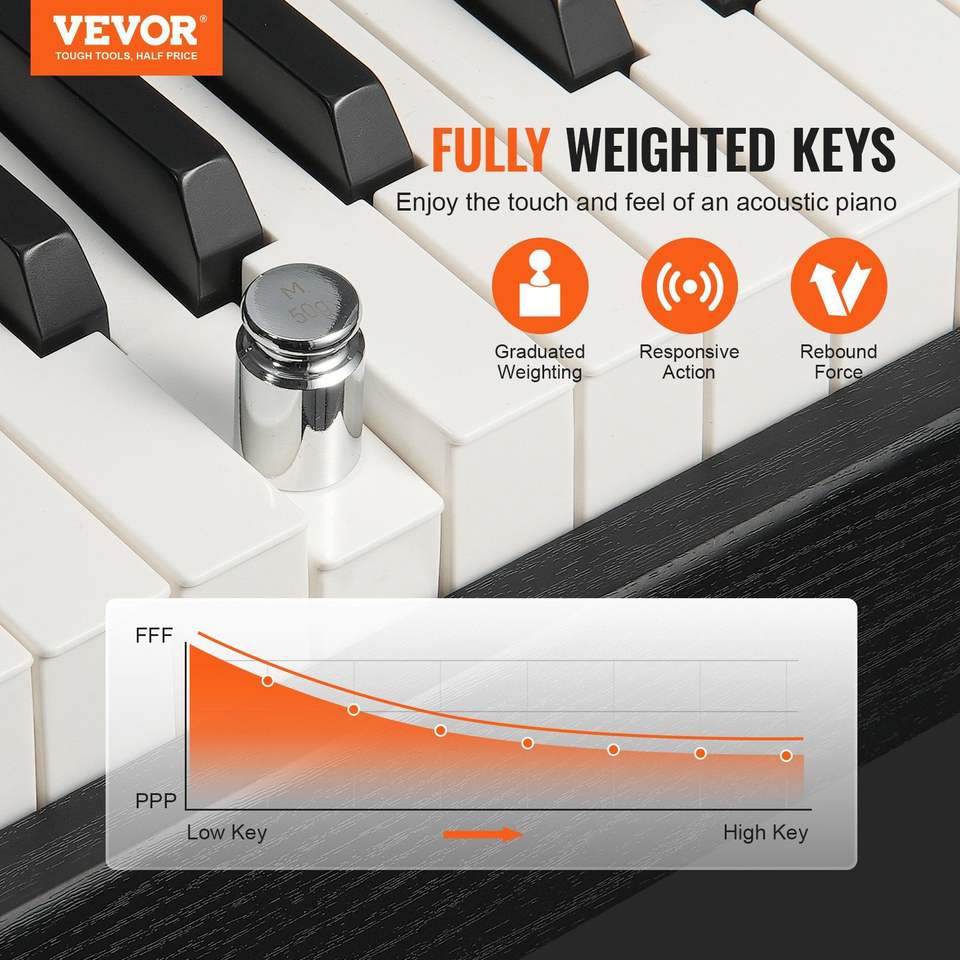 88-Key Fully Weighted Digital Piano with Dual Keyboard Speakers & Sustain Pedal