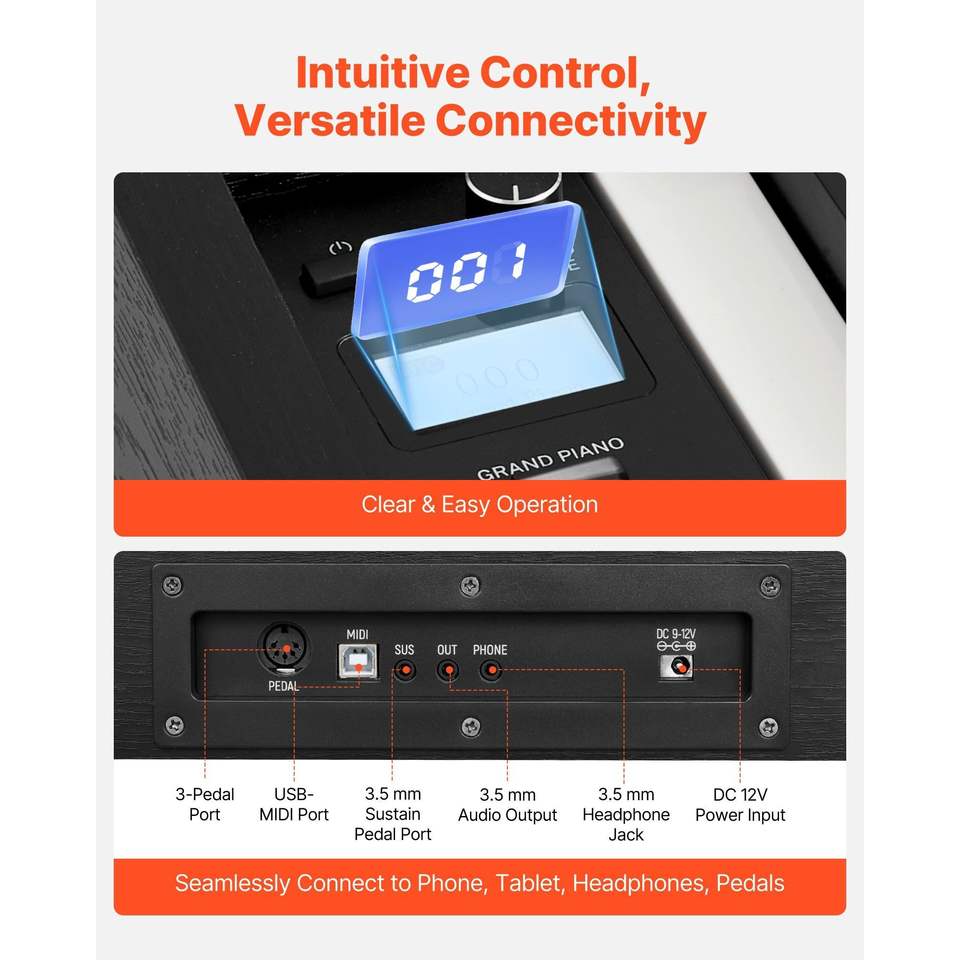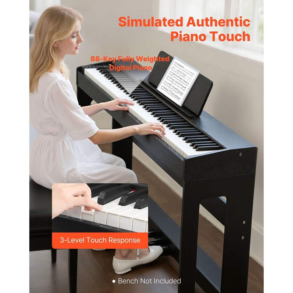 Pianoforte Digitale a 88 Tasti Completamente Pesati, Tastiera Elettrica con Triplo Pedale, Supporto per Pianoforte, Adattatore di Alimentazione, Alta Qualità Musicale