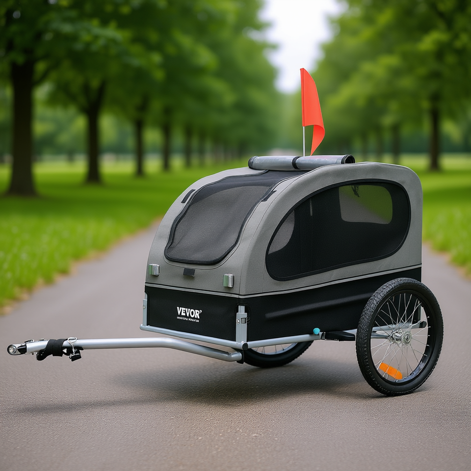 Dog Bike Trailer 88 Lbs Folding Frame Quick Release Wheels Universal Bicycle Coupler Reflectors Flag Black Gray Pet