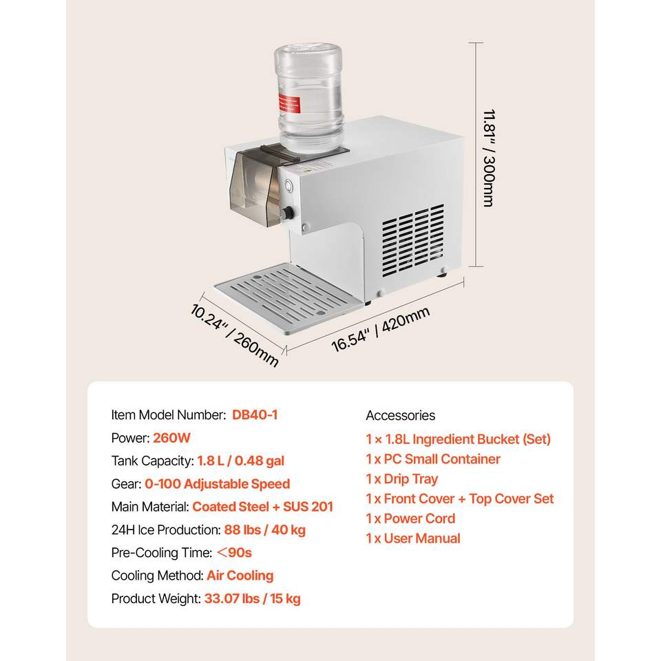 Macchina per Ghiaccio a Fiocchi 88LBS/24H con Lama in Acciaio Inox e Macchina Elettrica per Coni di Neve