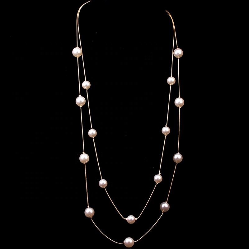 Collane a catena d'oro lunghe alla moda 88cm per collana multistrato di perle da donna