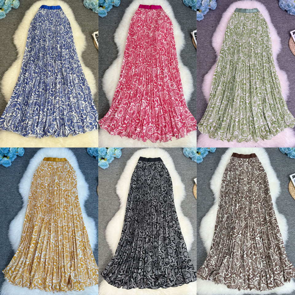 8965 African Ladies Skirt Print Versatile Midi Skirt for Women High Waist A-line Pleated Skirt With Wide Hem and Draped Effect