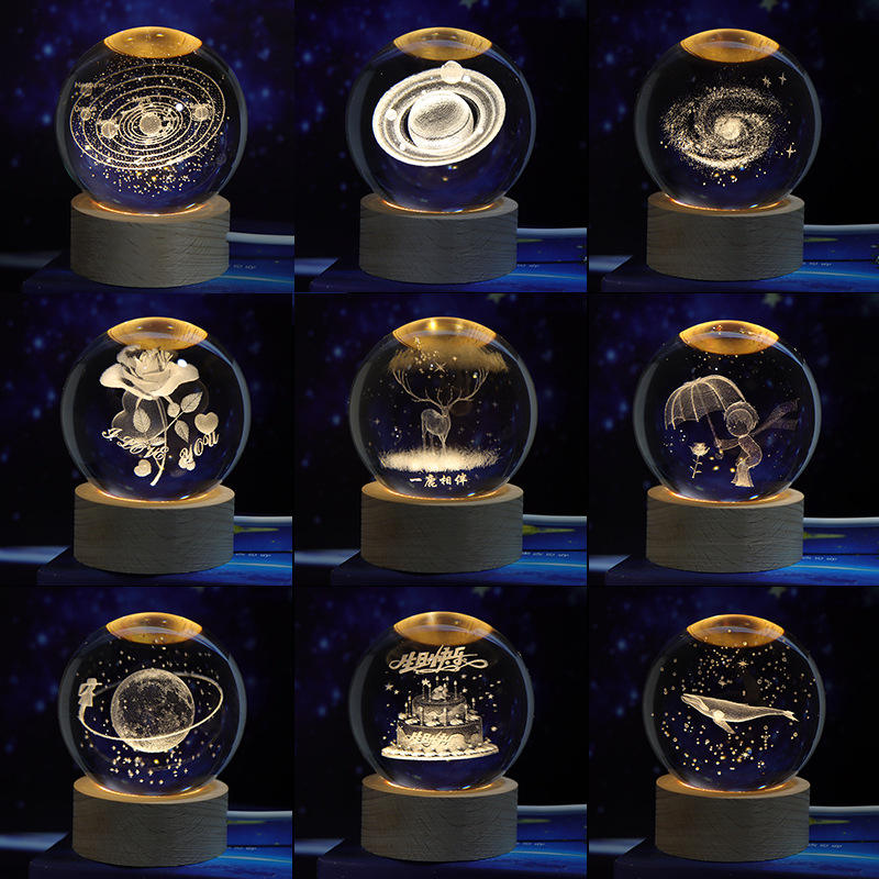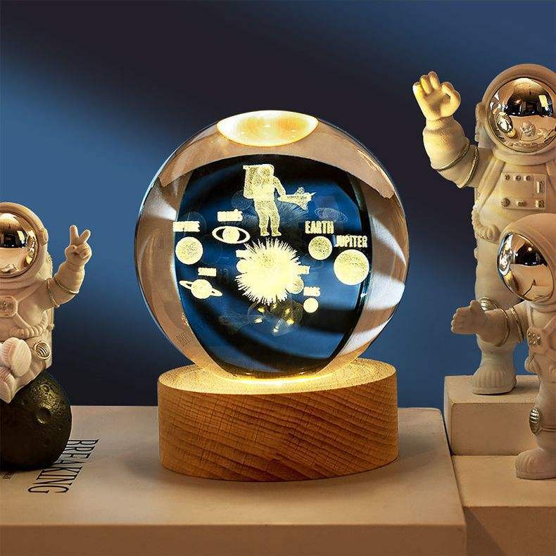 8CM sfera di cristallo 3D astronauta stellato luna sistema solare luce notturna decorazione sfera di vetro lampada da tavolo di san valentino regalo