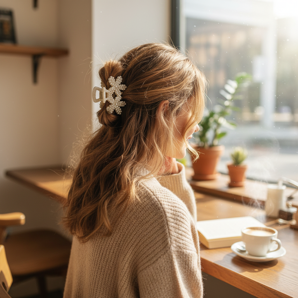 8CM stile coreano carino artiglio fermaglio per capelli due fiori pieni riempiti con resina acetato di plastica-prodotto di uso quotidiano