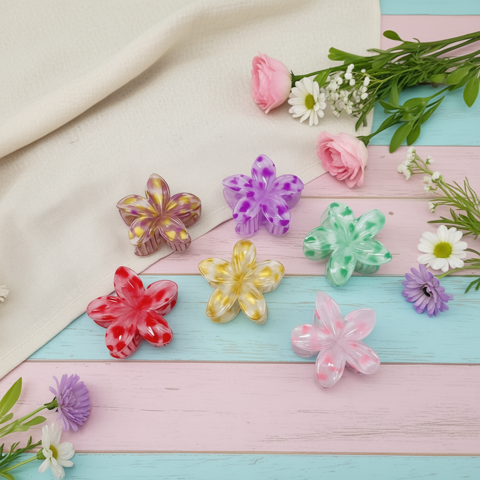 Fermaglio per capelli a forma di frangipani con stampa leopardata da 8 cm, 2 pezzi per colore, scatola da 600 pezzi
