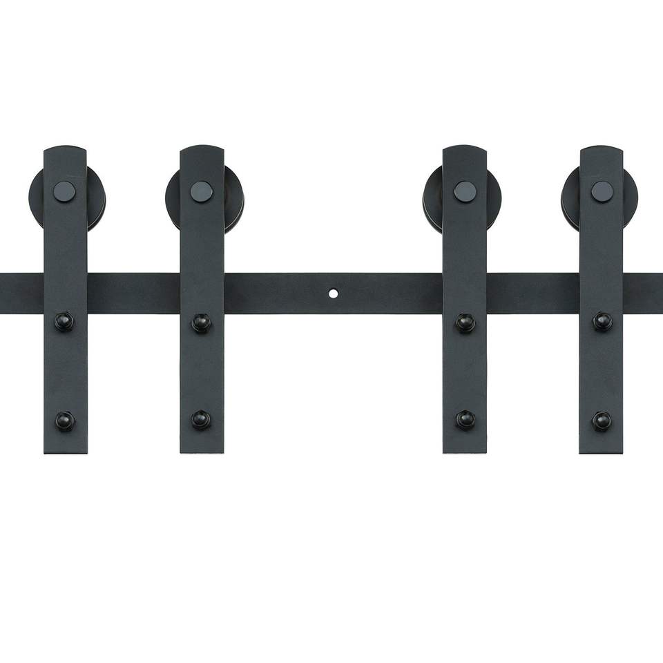 Kit Ferramenta per Porta Scorrevole a Binario da 2,4 m, Binario Rinforzato per Porte Doppie, Capacità 150 kg, Adatto per Porte con Larghezza Totale 1,1-1,3 m e Spessore 3-4 cm