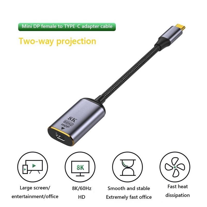 Adattatore cavo da 8K bidirezionale da tipo C a DisplayPort DP 1.4 convertitore da USB C a Mini DP 8K 60Hz 4K/120Hz adattatore da tipo C a DP