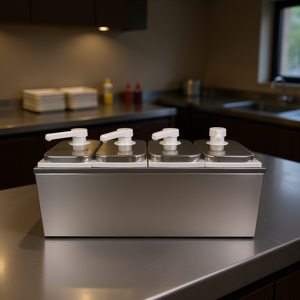 Dispenser per Salse in Acciaio Inox 8L con 4 Rubinetti, Modello Rettangolare Integrato di Grado Commerciale D0100HA6JFA