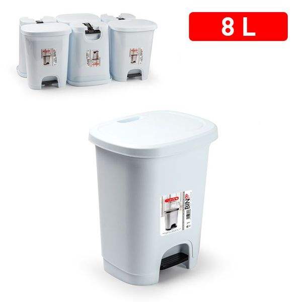 Bidone della Spazzatura Bianco con Pedale da 8L, Pratico Contenitore per Rifiuti