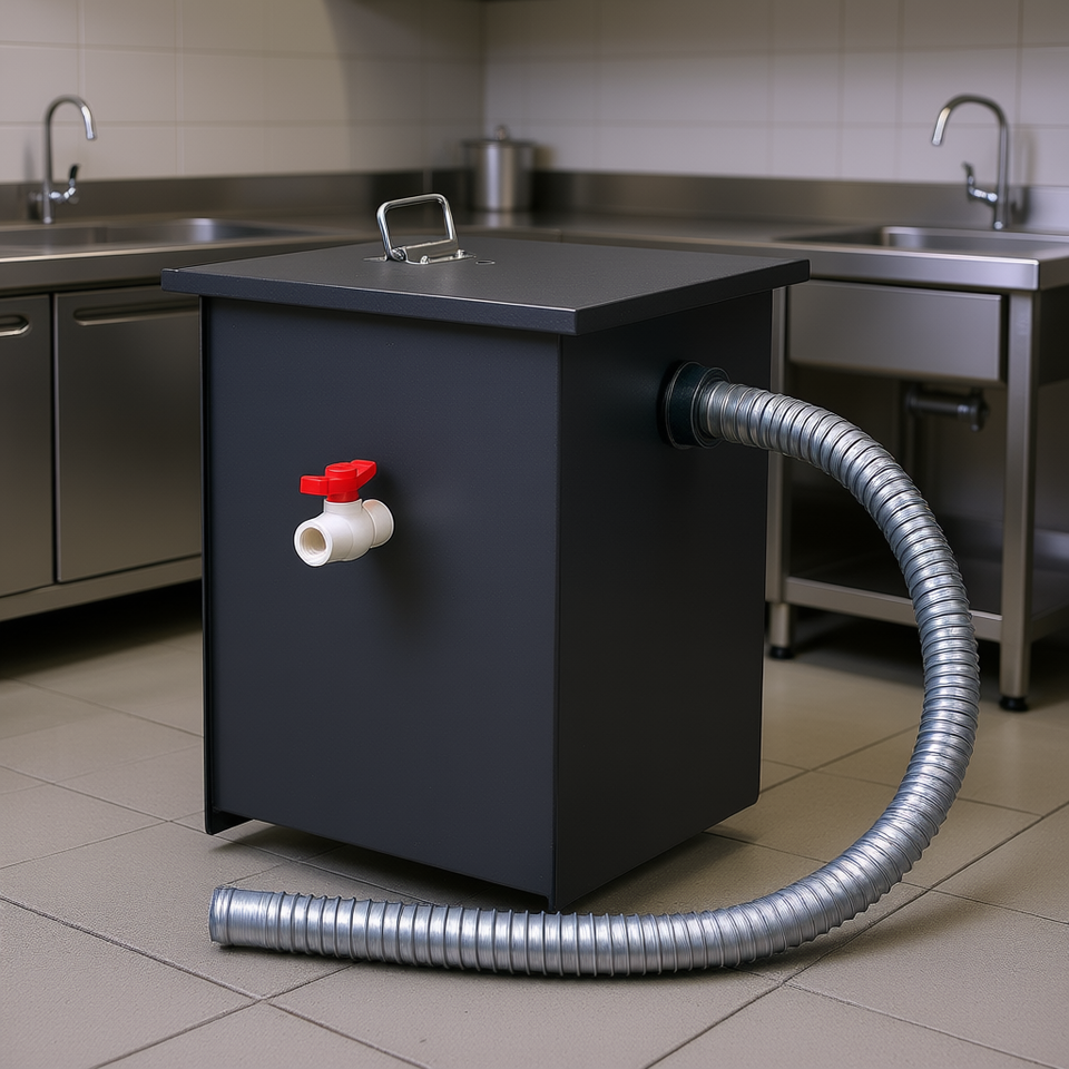Trappola per grassi commerciale in acciaio al carbonio da 8 libbre con ingresso laterale 4 GPM per attrezzature da cucina