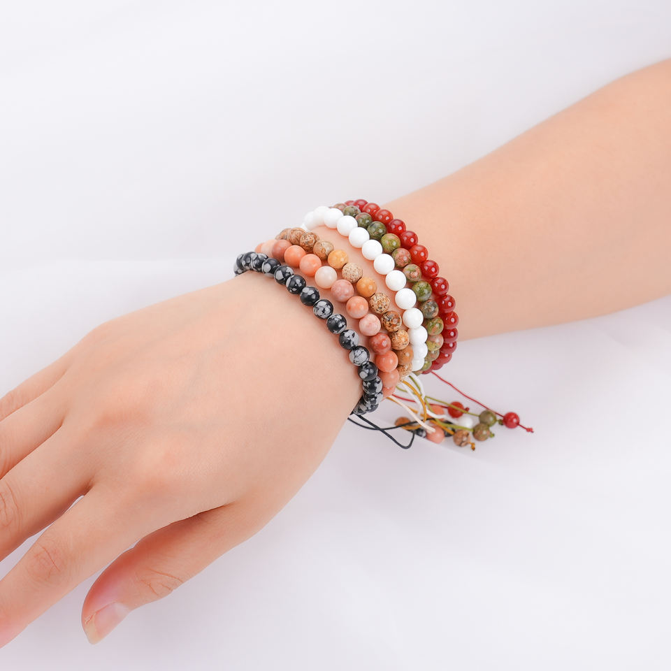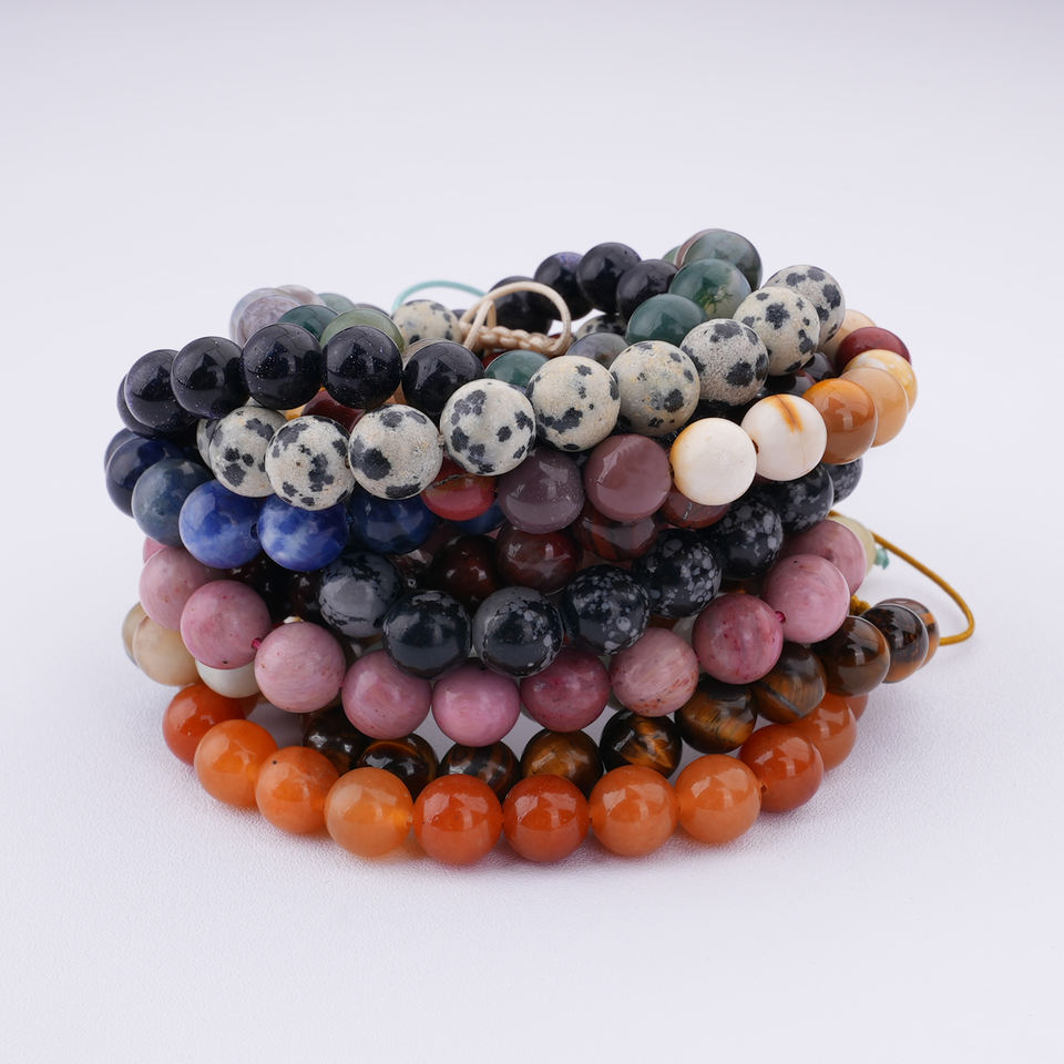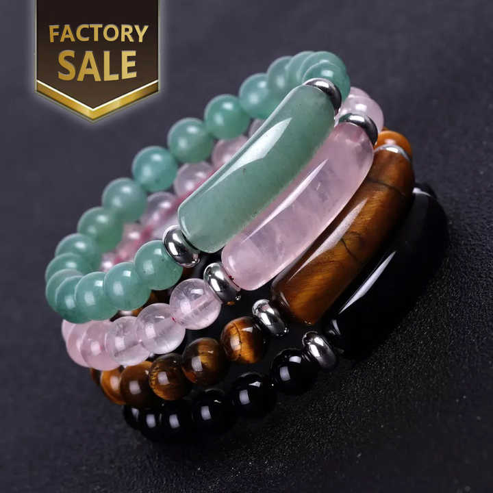 8MM Pulseras Anxiety Energy Gemstone Healing Bracelet Natural Stone Amethyst Tiger Eye Pink Quartz Beads Bridge Bracelet