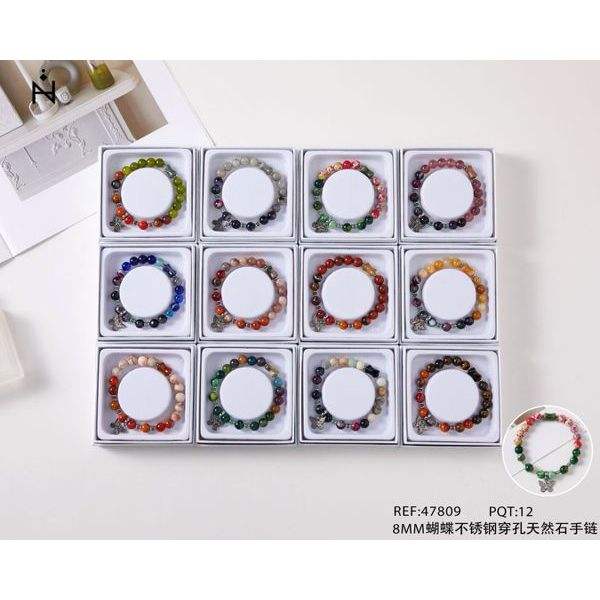Bracciale in acciaio inossidabile con farfalla da 8 mm e pietre naturali, gioielli alla moda con perline PULSERA