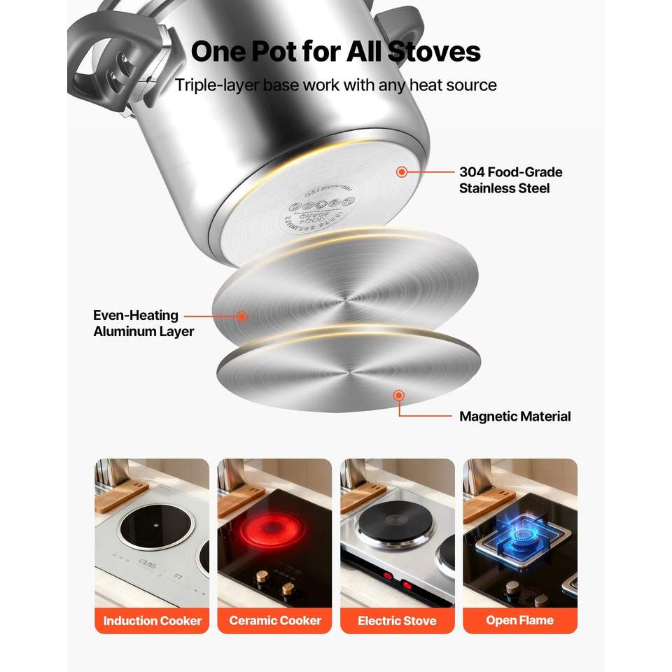 Pentola a pressione in acciaio inossidabile da 8 litri con coperchio in vetro temperato e griglia per cottura a vapore, pentola a tripla pressione