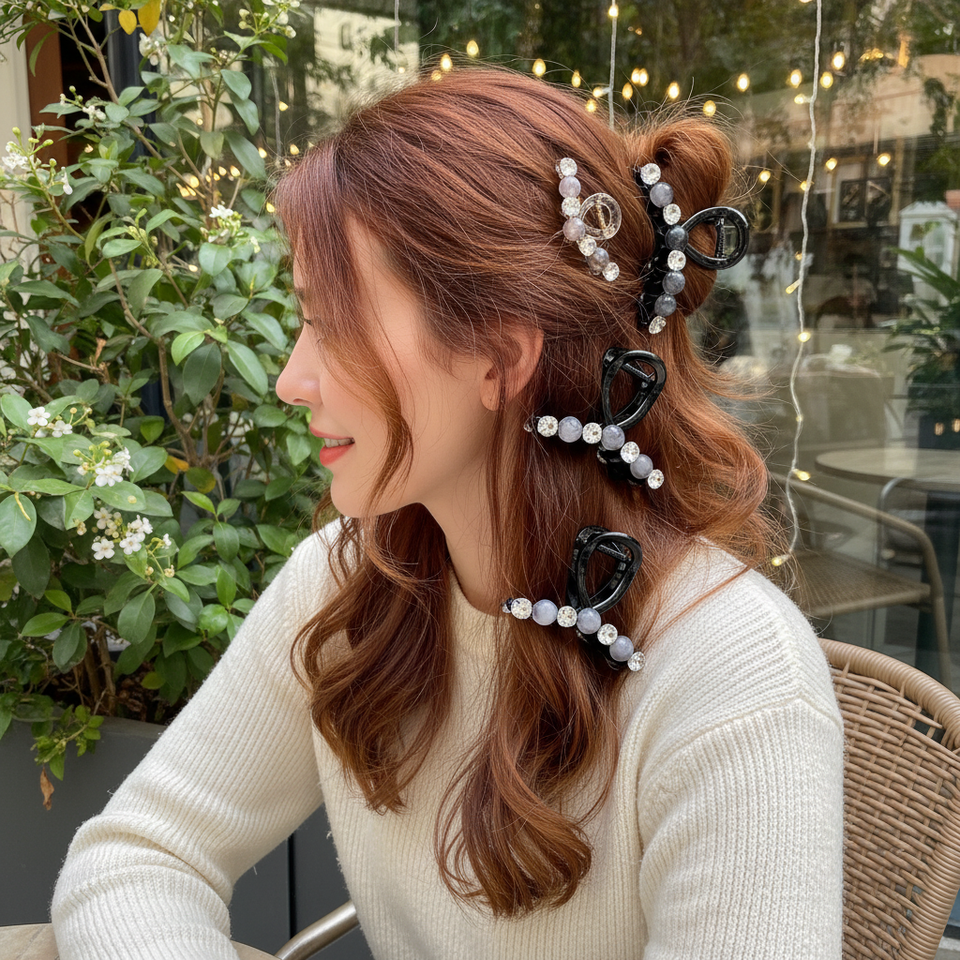 Artigli di capelli diamantati a nastro alto 8cm 6 pezzi in marrone e 6 pezzi in nero