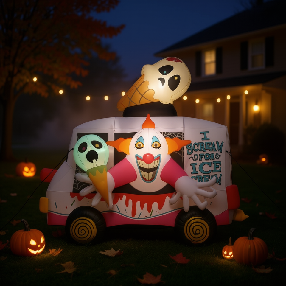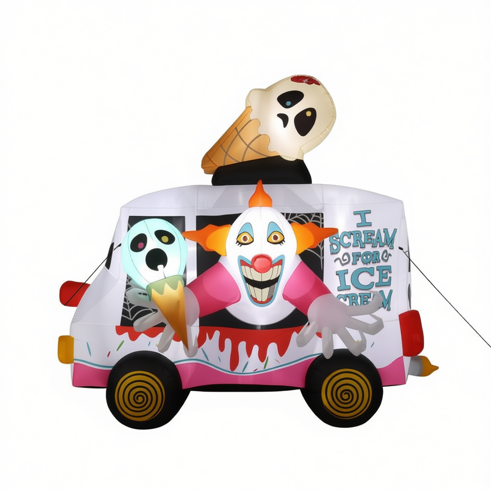 Clown Ice Cream Truck Inflatable 8ft Halloween Outdoor Yard Decoration PVC Material Unisex
