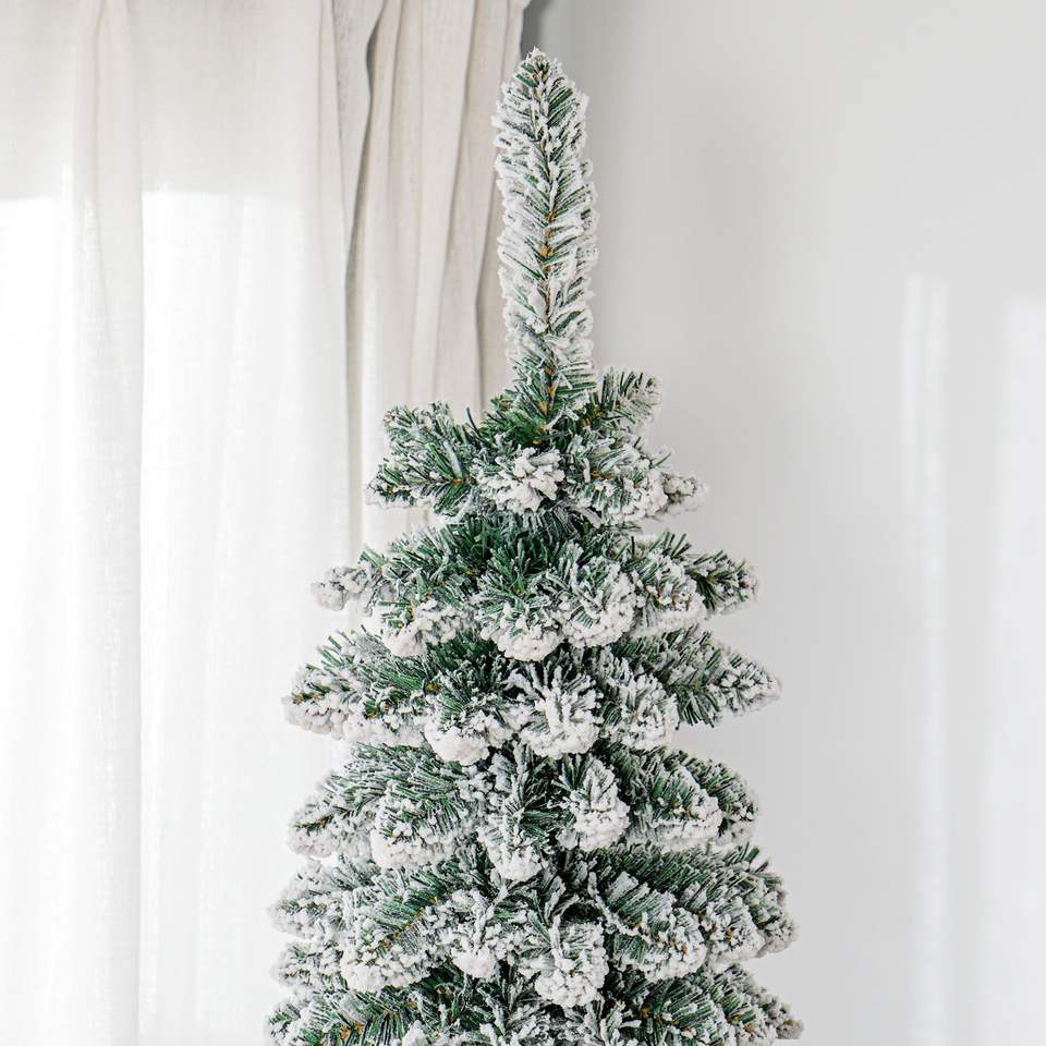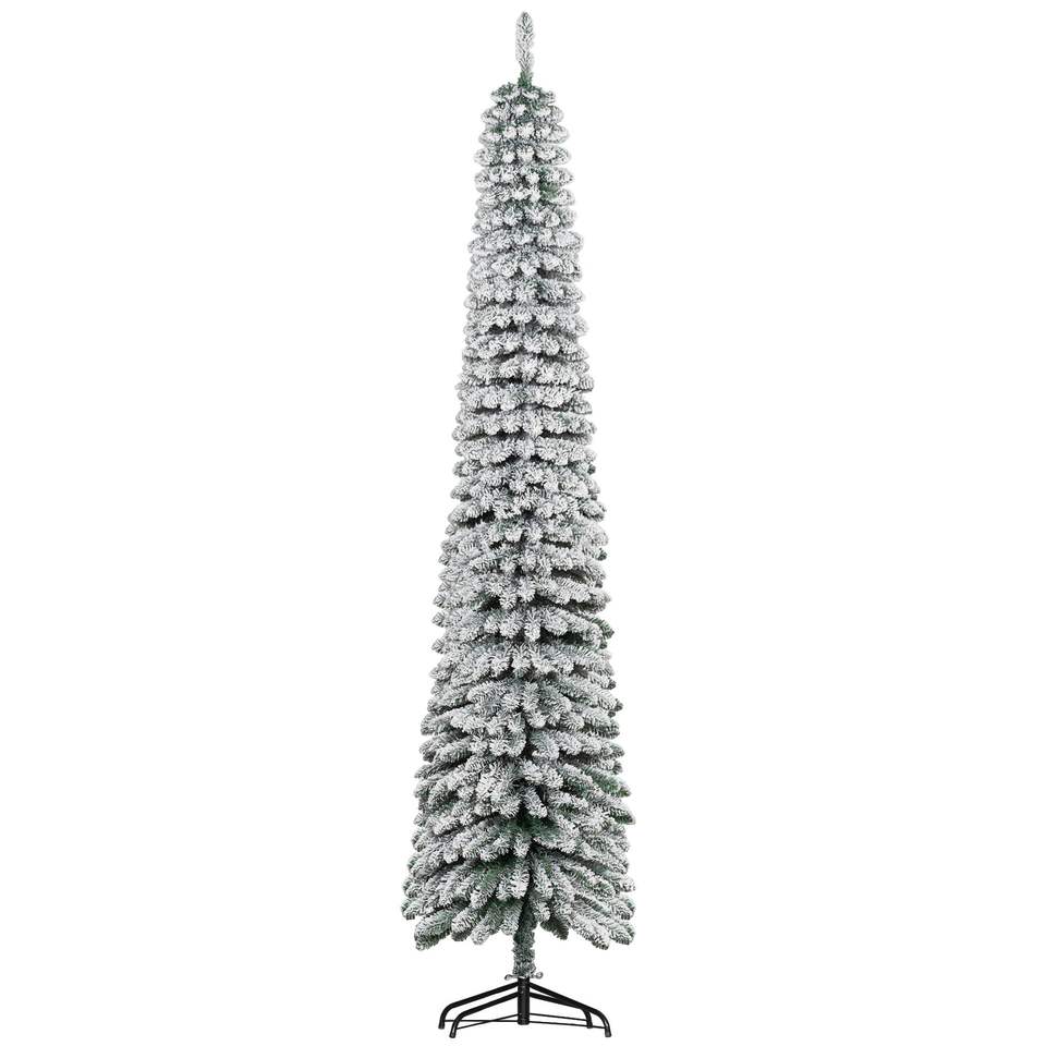 Albero di Natale Artificiale Verde Realistico, Sottile e Non Illuminato, Alto 2,4 Metri, con 603 Punte e Effetto Neve