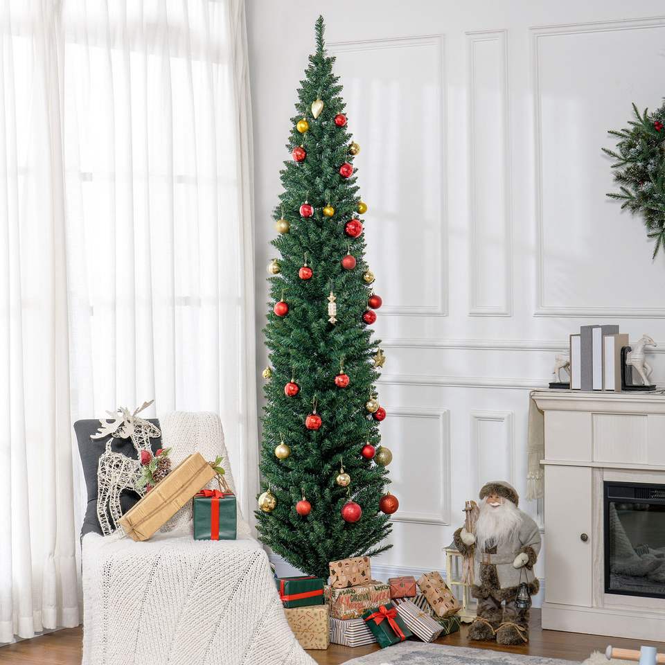 Albero di Natale Artificiale a Forma di Matita Non Illuminato, 2,4 Metri, con 618 Punte Realistiche, Base in Plastica, Verde