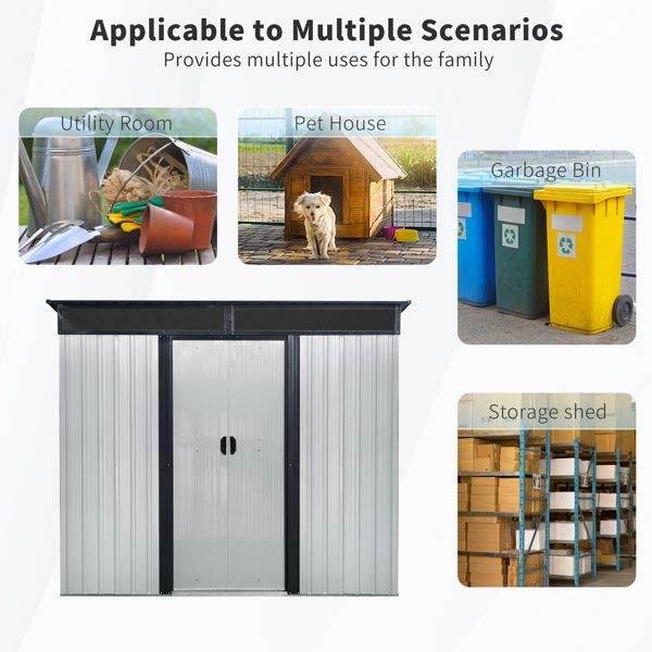 8ft X 6ft White and Black Outdoor Metal Storage Shed with Lockable Sliding Doors & Transparent Plate for Garden Lawn