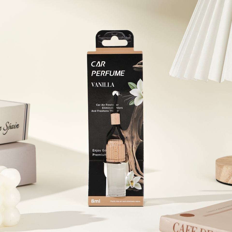 Profumo liquido con olio essenziale da 8 ml, fragranza popolare, diffusore per auto con clip da appendere, bottiglia in vetro, deodorante per auto