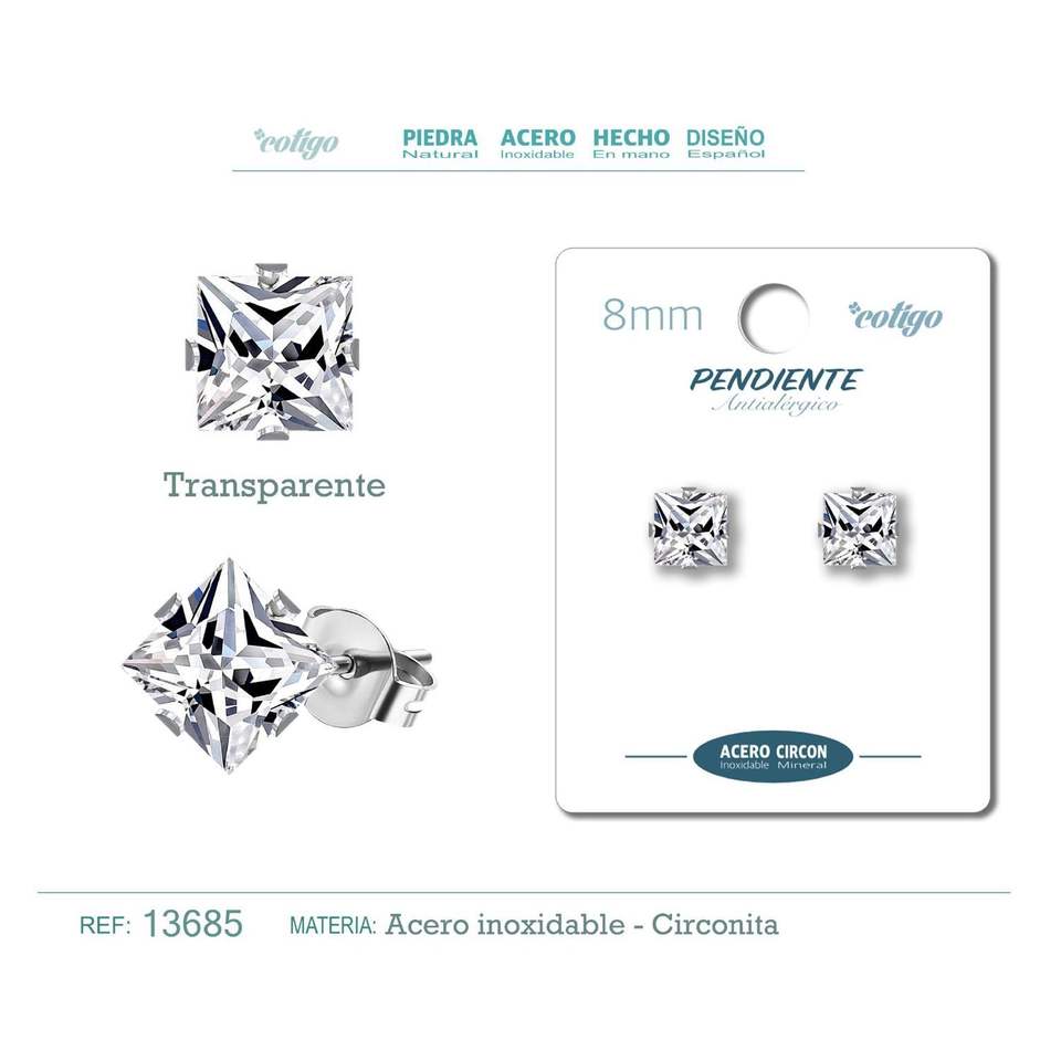 Orecchini Quadrati con Zirconia Cubica Trasparente da 8mm con Base in Acciaio Placcato Argento, Gioielli ed Accessori Eleganti in Oro Rosa e Oro Giallo