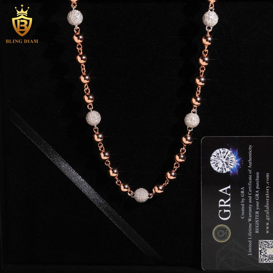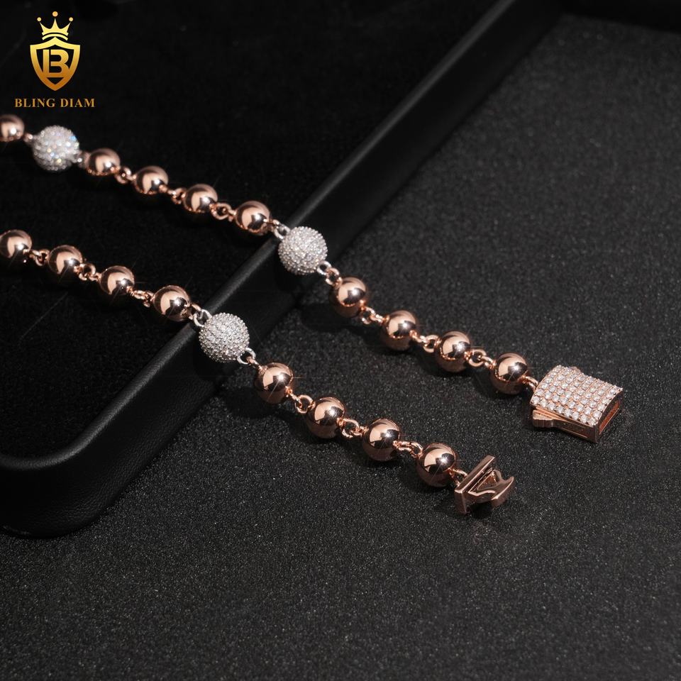 8mm personalizzato ghiacciato fuori palla con perline lunghe collana in argento 925 catene in oro rosa per gli uomini Rapper moda gioielli Hip Hop