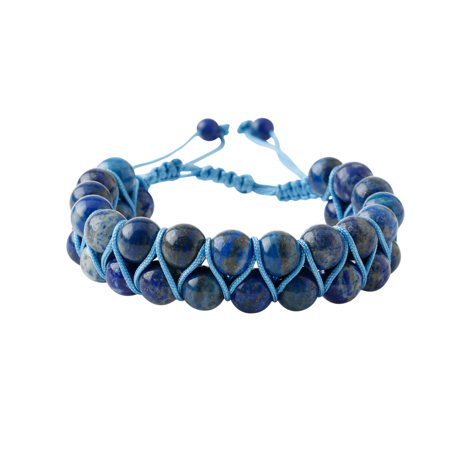 Bracciale in Macramè con Doppia Fila di Lapislazzuli da 8mm, Pietra Naturale