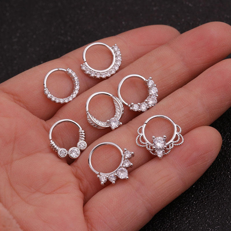 Orecchino a cerchio aperto da 8 mm con zirconi per piercing Daith, naso, setto, cartilagine, Helix, Rook - Vendita all'ingrosso
