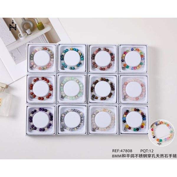 Braccialetto Angelina Peace Dove con Perline 8mm in Acciaio Inossidabile e Pietra Naturale, Gioiello Unisex Stile Bohémien