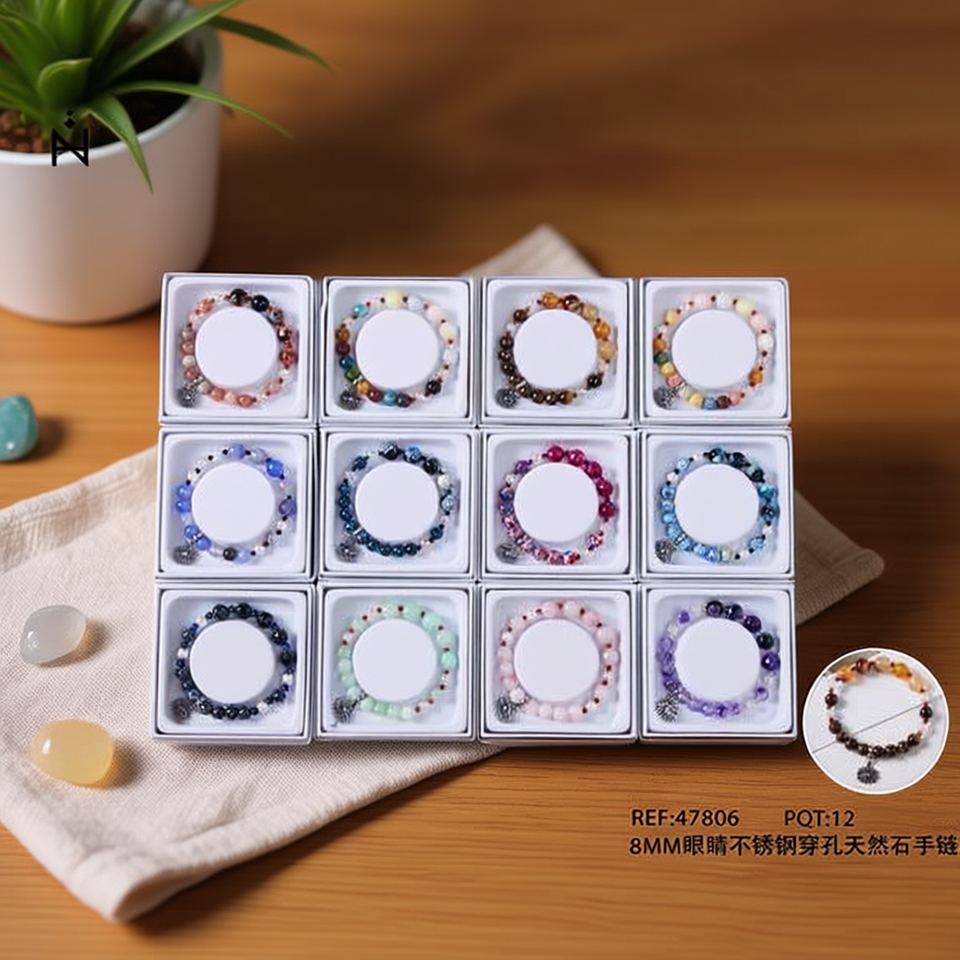 Bracciale Angelina con Perline in Acciaio Inossidabile 8mm, Gioiello Unisex in Stile Bohémien con Pietre Naturali