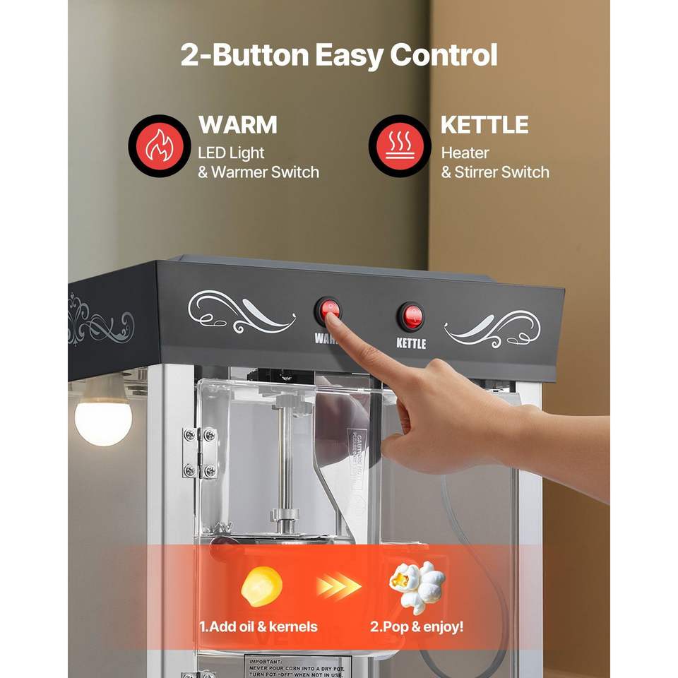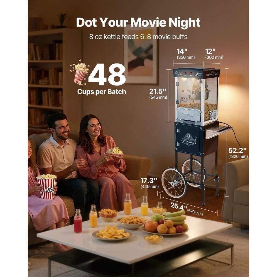 Macchina per Popcorn Commerciale in Acciaio Inox da 8oz 800W # 48 Tazze # Stile Teatrale # 48 Tazze per Batch # Carrello per Macchina Popcorn