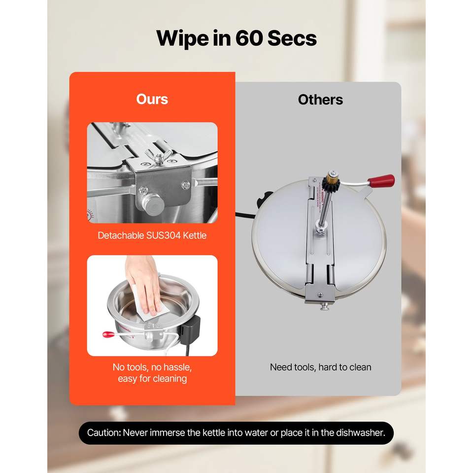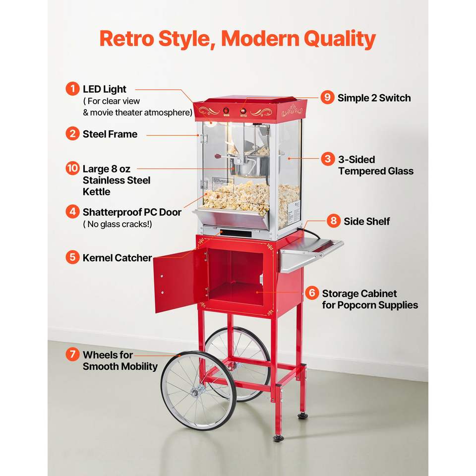 Macchina per Popcorn Commerciale in Acciaio Inox da 8oz, Stile Cinema, 48 Tazze per Batch, Carrello per Popcorn 800W