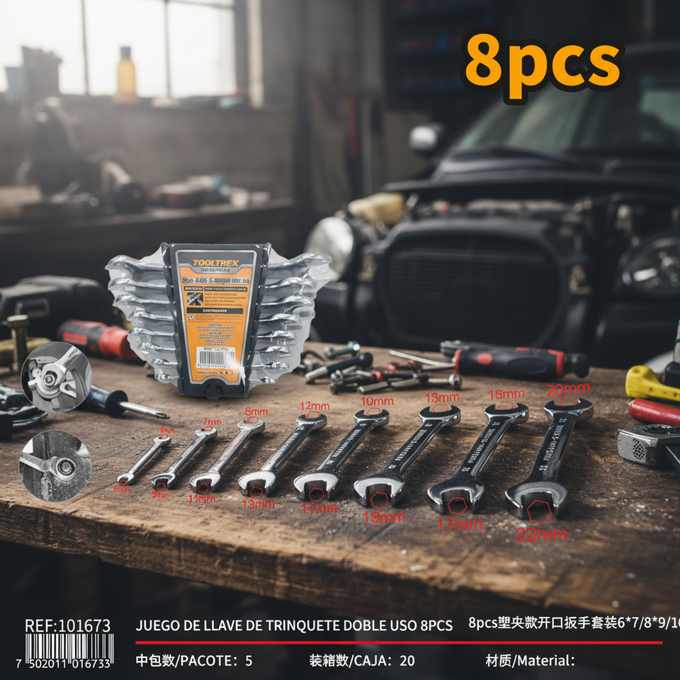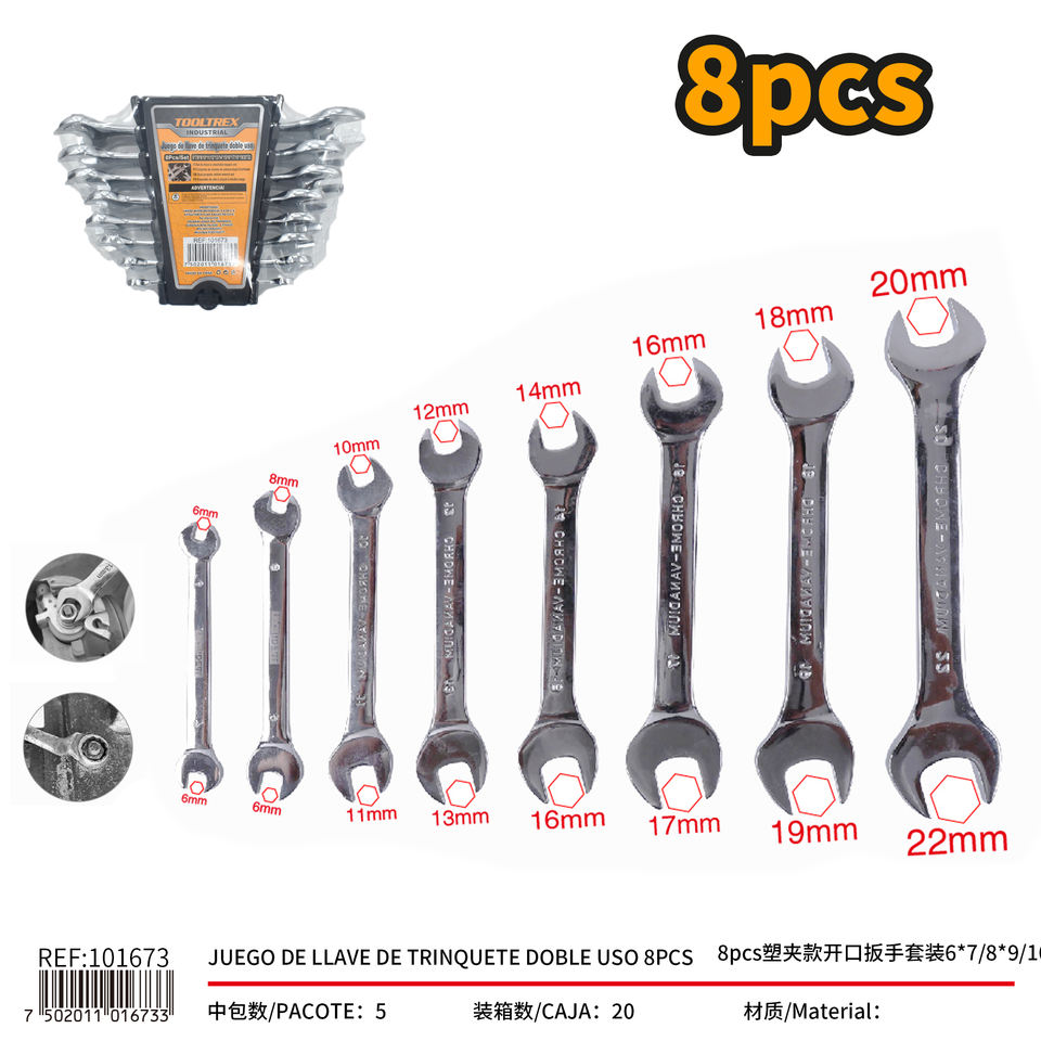 8pcs CRV Plastic Clip Open End Wrench Set Industrial DIY 6*7/8*9/10*11/12*13/14*15/16*17/18/19/20/22 Steel Ring Spanner Box