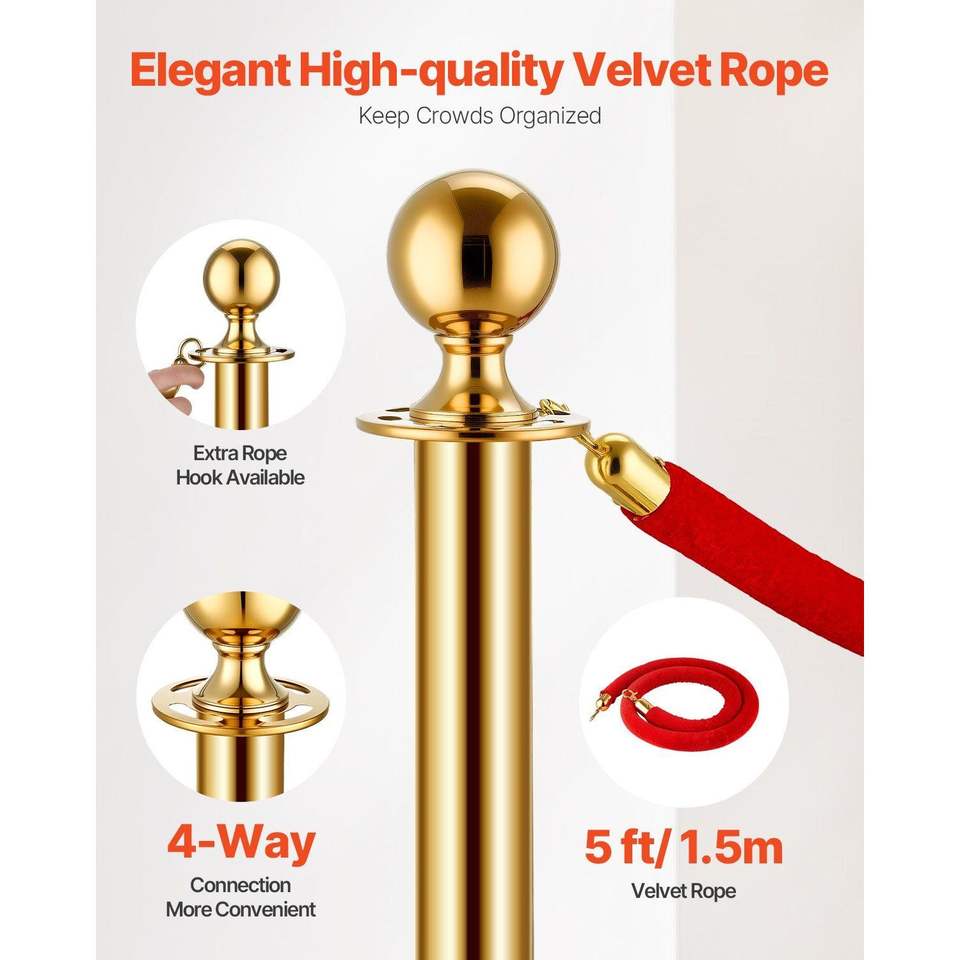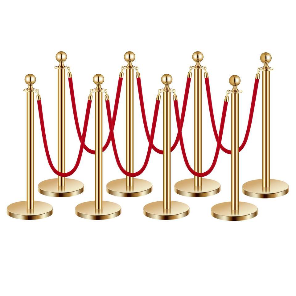 8 pezzi pali in acciaio inossidabile con Base cava 6 corde di velluto rosso montanti in oro Red Carpet pali per corridori per il controllo della folla barriere feste
