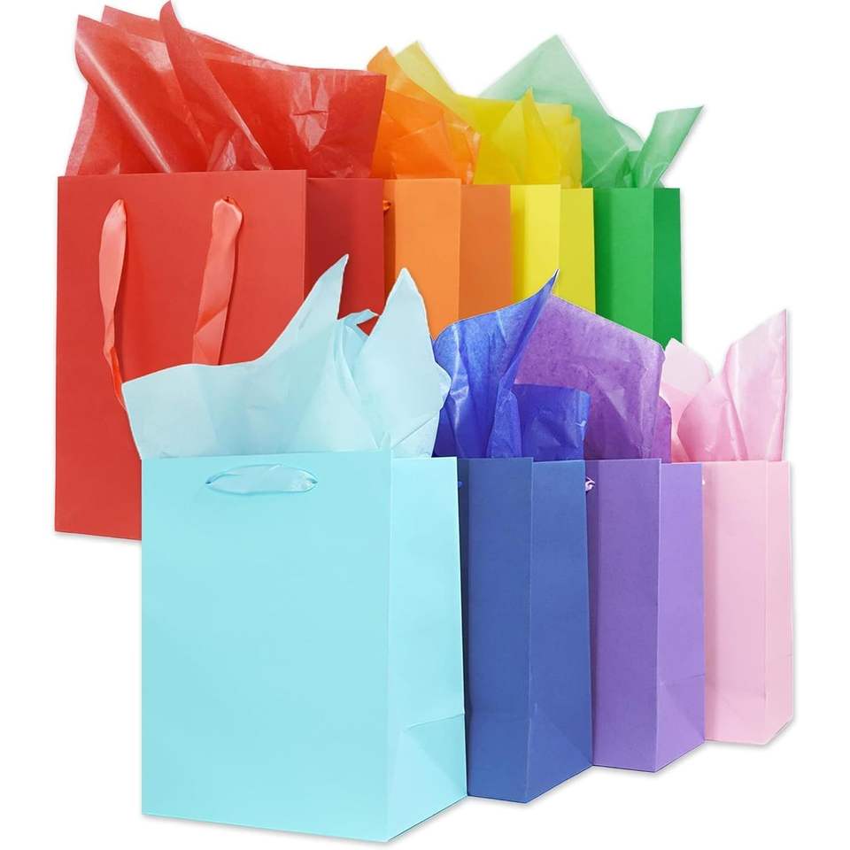 8 sacchetti regalo opachi arcobaleno di medie dimensioni con manici, 8x5x10 pollici, 16 tessuti per matrimoni e altri eventi