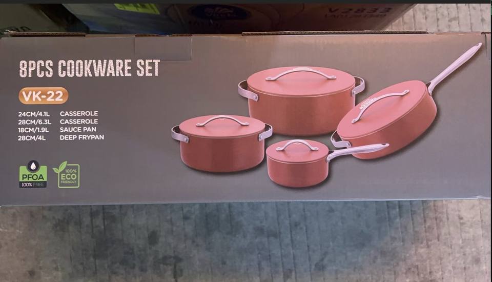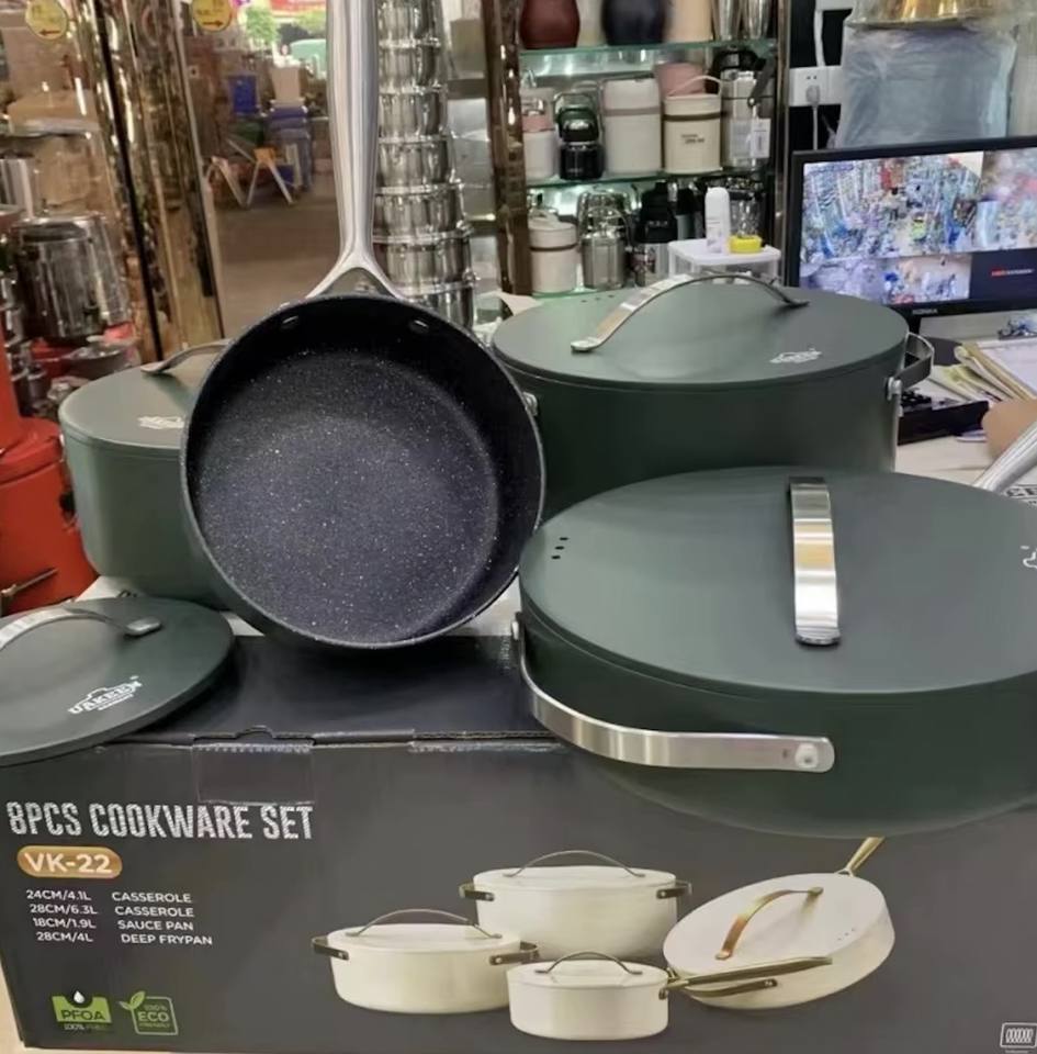 Set 8 Pezzi Pentole e Padelle Antiaderenti in Pietra Pressofusa Resistenti con Coperchio Piatto