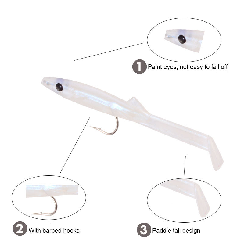 8 pezzi piccolo PVC artificiale 6.5cm 1.5g di pesca di anguilla luminosa con gancio esca morbida per la pesca alla carpa in barca oceanica nel lago fluviale
