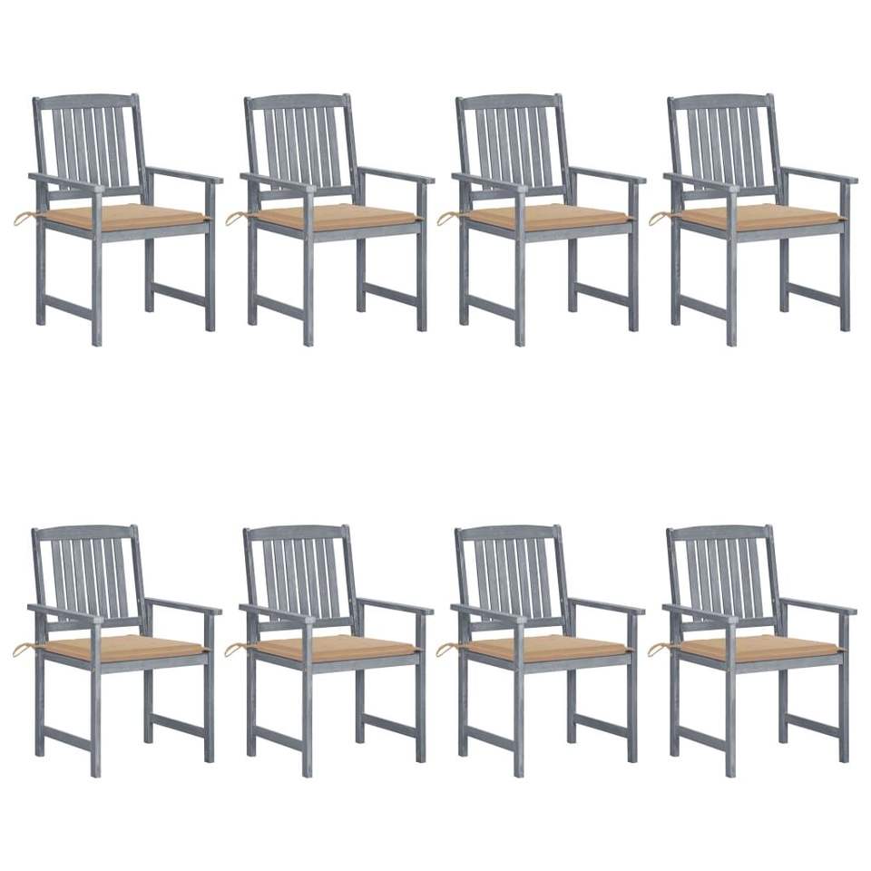 8pcs Solid Acacia Wood Patio Chairs with Gray Cushions Premium Patio Furniture Set