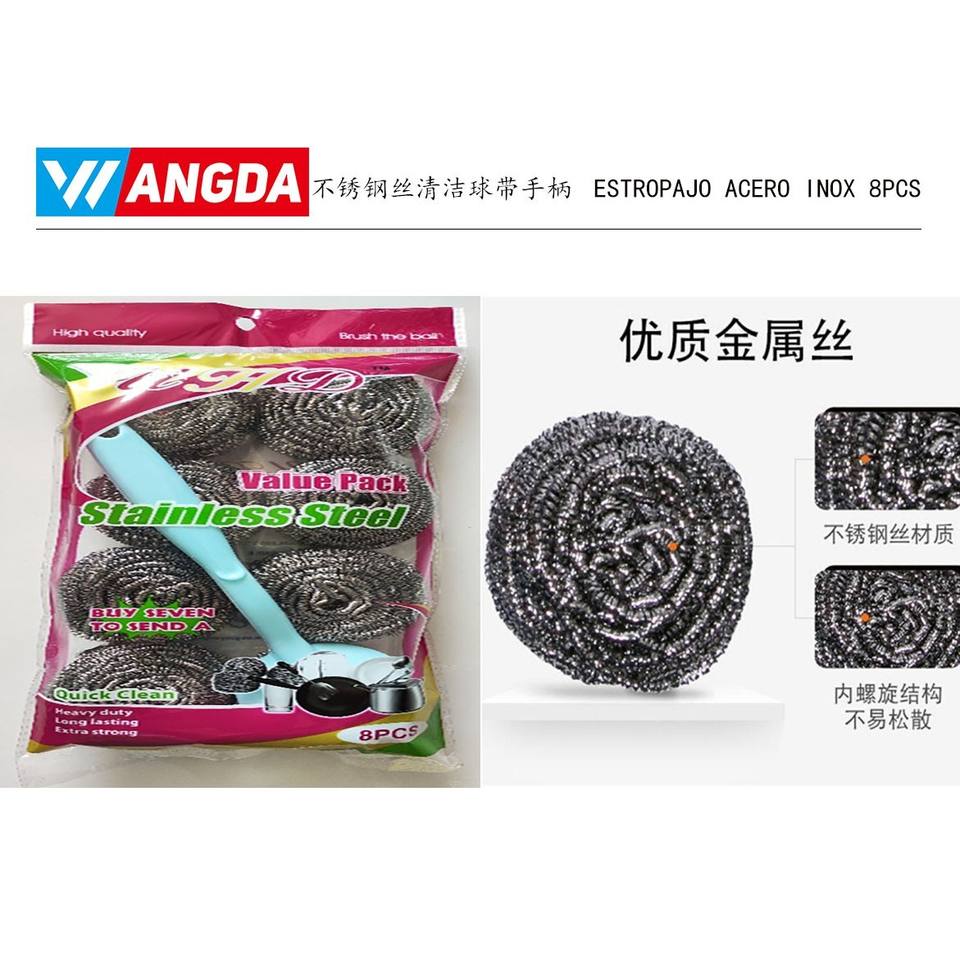 8 pezzi sfera per la pulizia del filo in acciaio inossidabile con manico per attrezzature di lavaggio