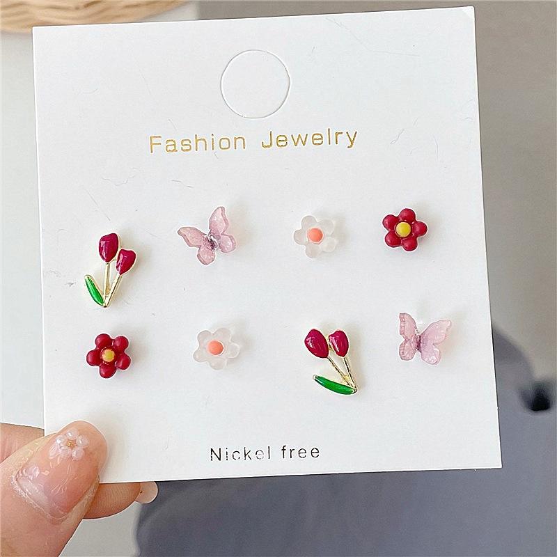 Set di orecchini a forma di tulipano a forma di farfalla da 8 pz/set per donne e ragazze orecchini creativi