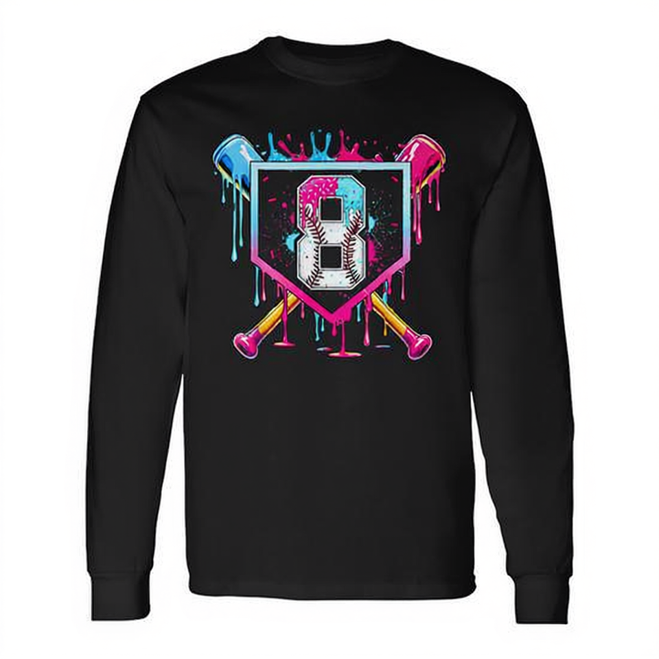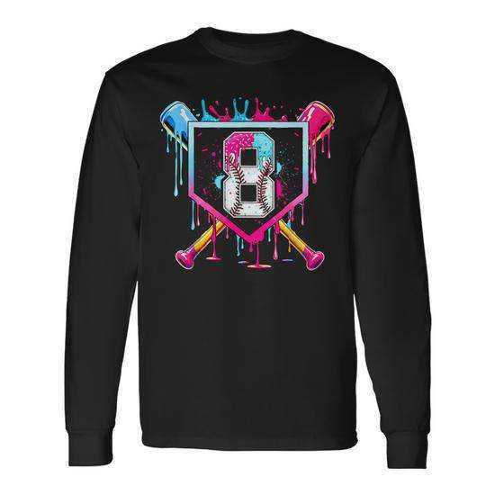 Maglietta a maniche lunghe per il 8° compleanno da ragazzo, con stampa baseball e ghiaccio, regalo promozionale